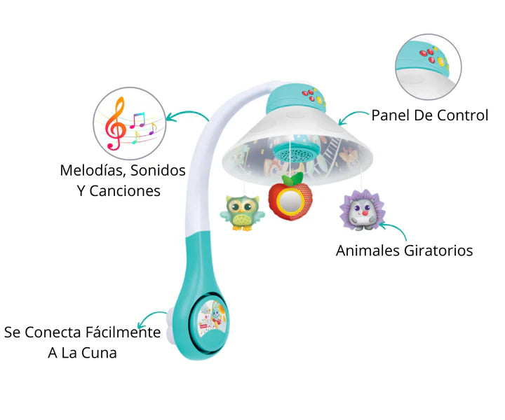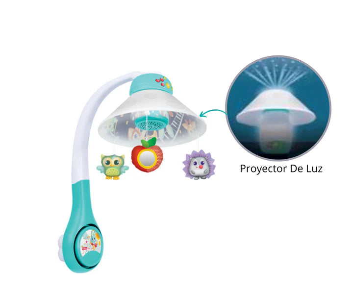 Acompaña a tu bebé en cada etapa del día con este encantador proyector móvil. El modo diurno incluye melodías alegres que estimulan el juego y la interacción, mientras que el modo nocturno ofrece suaves canciones de cuna, sonidos de la naturaleza y efectos divertidos que crean un ambiente acogedor.