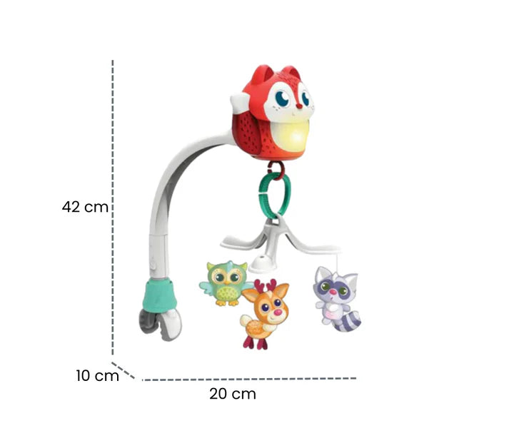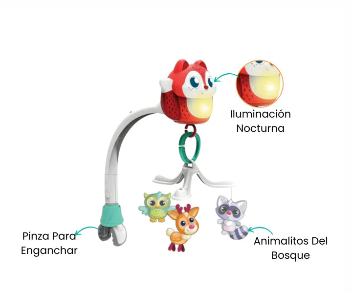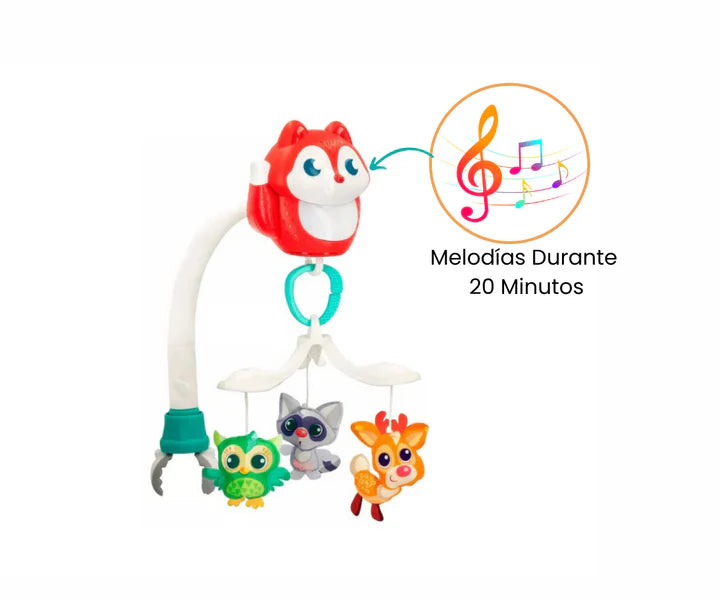 Sumérgete en un mundo encantado con el móvil musical multicolor. Con cada giro y movimiento este móvil estimula la imaginación, sus formas y colores vibrantes estimulan los sentidos de la vista y el oído, brindando una experiencia sensorial completa que nutre el desarrollo cognitivo y emocional de los niños.