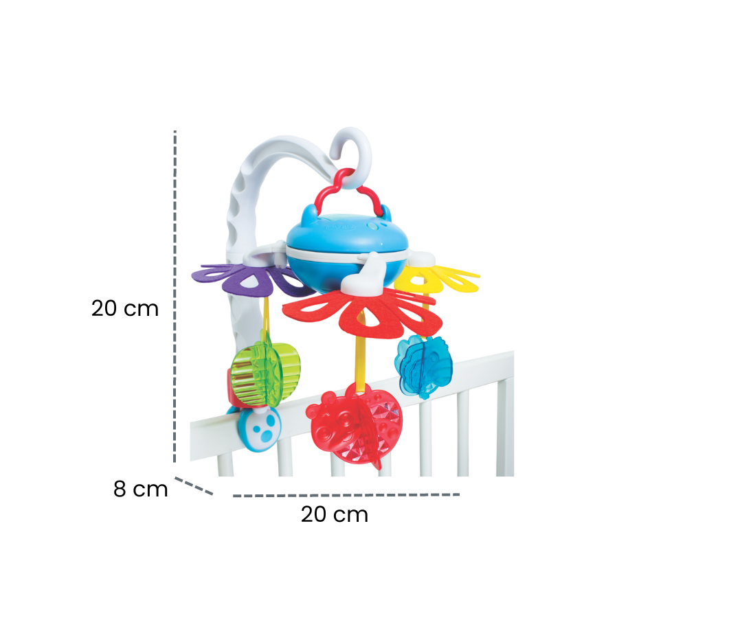 Sumérgete en la serenidad del sueño con el adorable Móvil Musical de Jardín. Con tres personajes colgantes temáticos que capturan suavemente la luz, este móvil es más que una dulce melodía; es un compañero tranquilizador para la hora de dormir o durante los viajes. Deja que las encantadoras criaturas del jardín guíen a tu pequeño hacia un sueño apacible y lleno de magia.