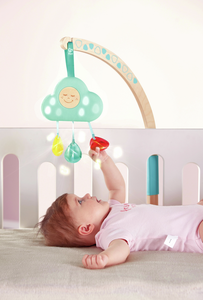 La Luz de Nube Musical tiene un temporizador y un sensor que reactivará la luz y el sonido automáticamente si tu pequeño/a empieza a llorar. Se sentirán como en una nube.