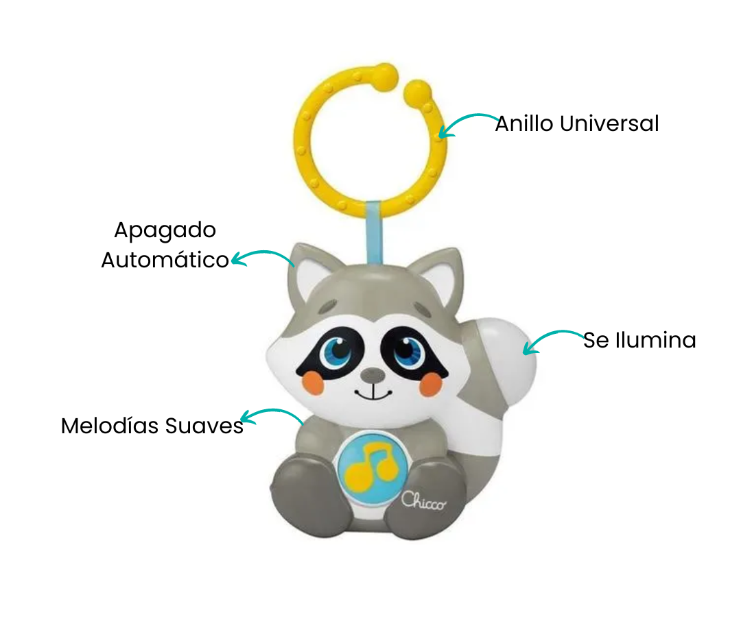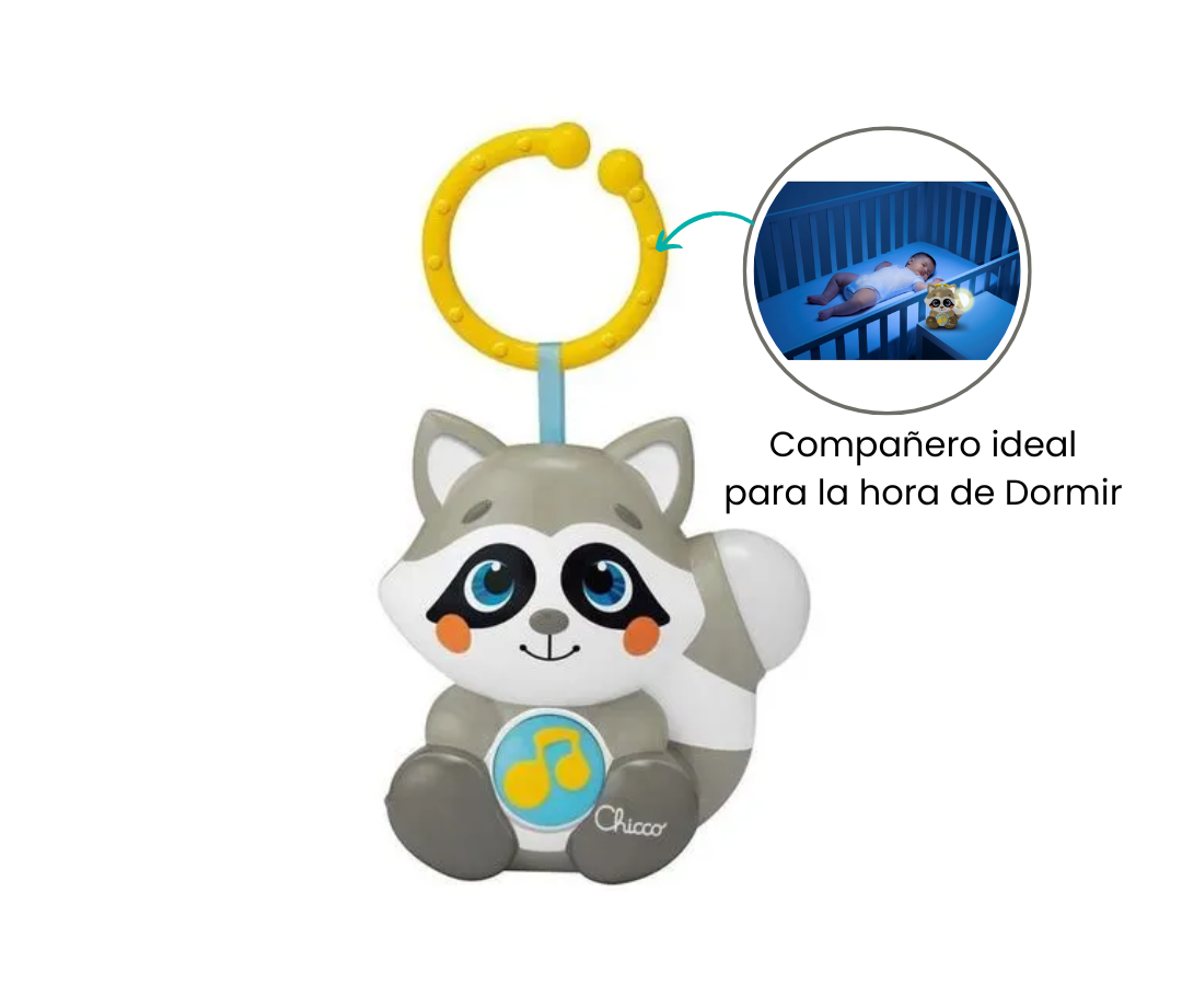 Descubre el adorable juguete en forma de mapache, ideal para calmar a tus hijos durante los paseos o como una suave luz nocturna en su mesita. Este compañero de peluche está diseñado para brindar tranquilidad a la hora de dormir.