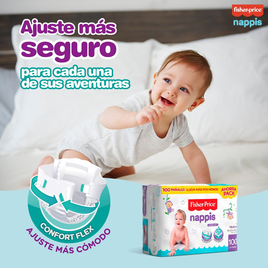 Diseñados con orejas flexibles que garantizan un agarre seguro y cómodo, estos pañales ofrecen una protección excepcional para la piel delicada de tu bebé. Con los pañales Nappis estarás listo para enfrentar cualquier desafío del día a día con tranquilidad. Los pañales están diseñados para brindar una absorción superior y una sensación de sequedad prolongada, manteniendo a tu bebé feliz y cómodo en todo momento.