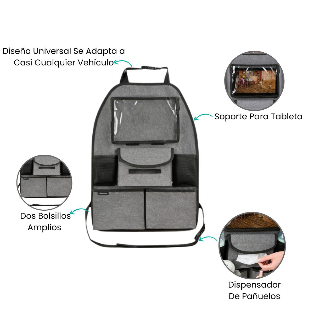 El organizador para coche es el aliado perfecto para mantener tu vehículo limpio, funcional y libre de desorden. Diseñado para adaptarse a las necesidades de las familias modernas, ofrece un espacio práctico para guardar todo lo necesario durante los trayectos. Desde viajes largos hasta los desplazamientos diarios, te permite tener a mano lo esencial para ti y tus pequeños, sin comprometer la comodidad ni el estilo del interior de tu auto.
