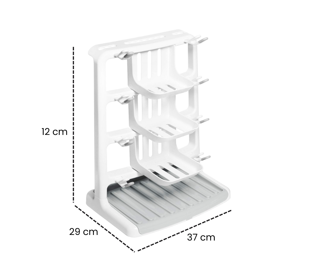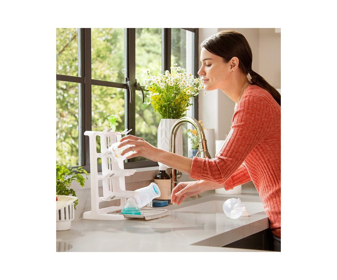 El Organizador para Secado Tidy Dry ™ está diseñado para ocupar un espacio mínimo y ofrecer la máxima practicidad. Este producto evita que los biberones, piezas y chupetes ocupen toda la cocina después de lavarse.