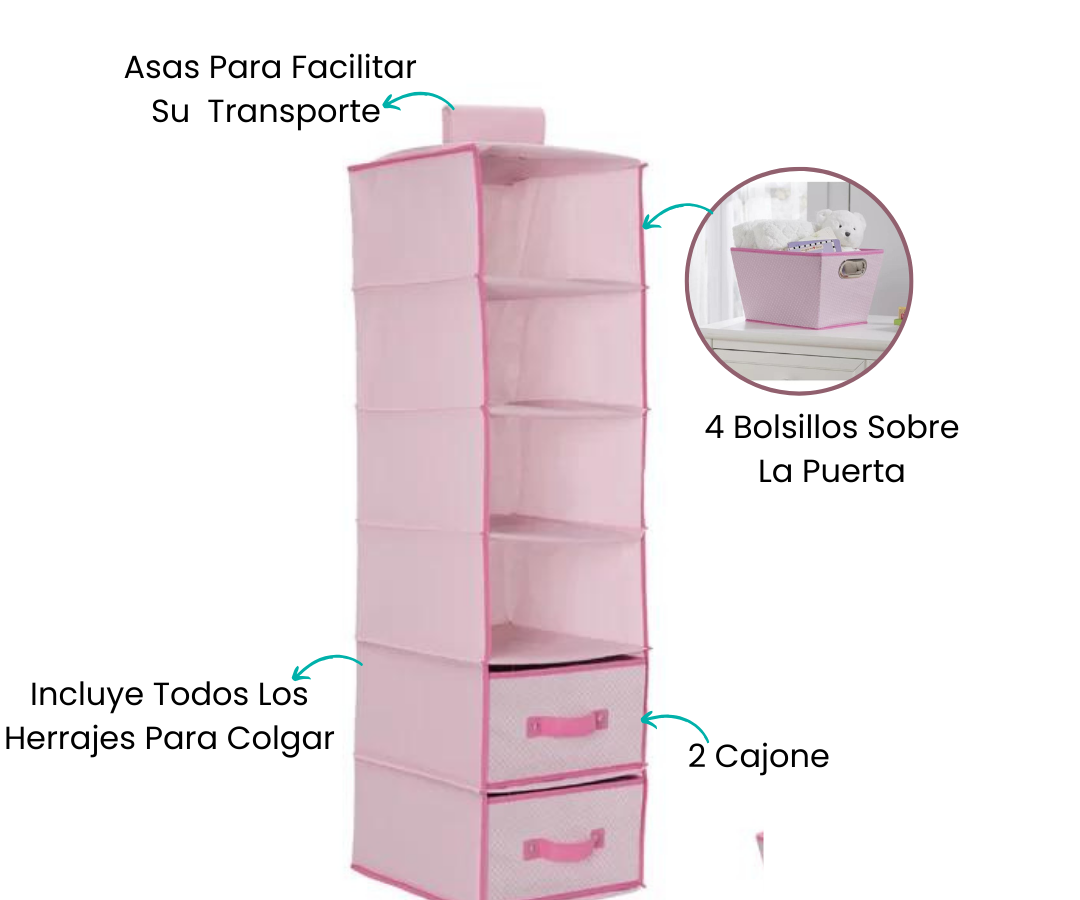 Ideal para armarios grandes o pequeños, este diseño inteligente y ahorrador de espacio maximiza el almacenamiento en la habitación de los niños. Su versatilidad se adapta a diferentes tamaños de armarios, brindando una solución eficiente para mantener organizados juguetes, ropa y accesorios. Con este sistema ingenioso, cada rincón del cuarto de niños se aprovecha al máximo, proporcionando un ambiente ordenado y funcional.