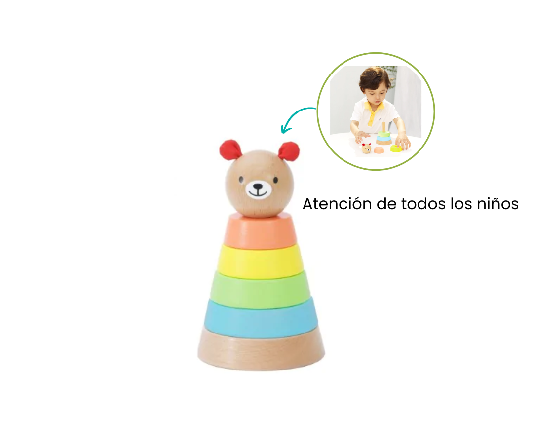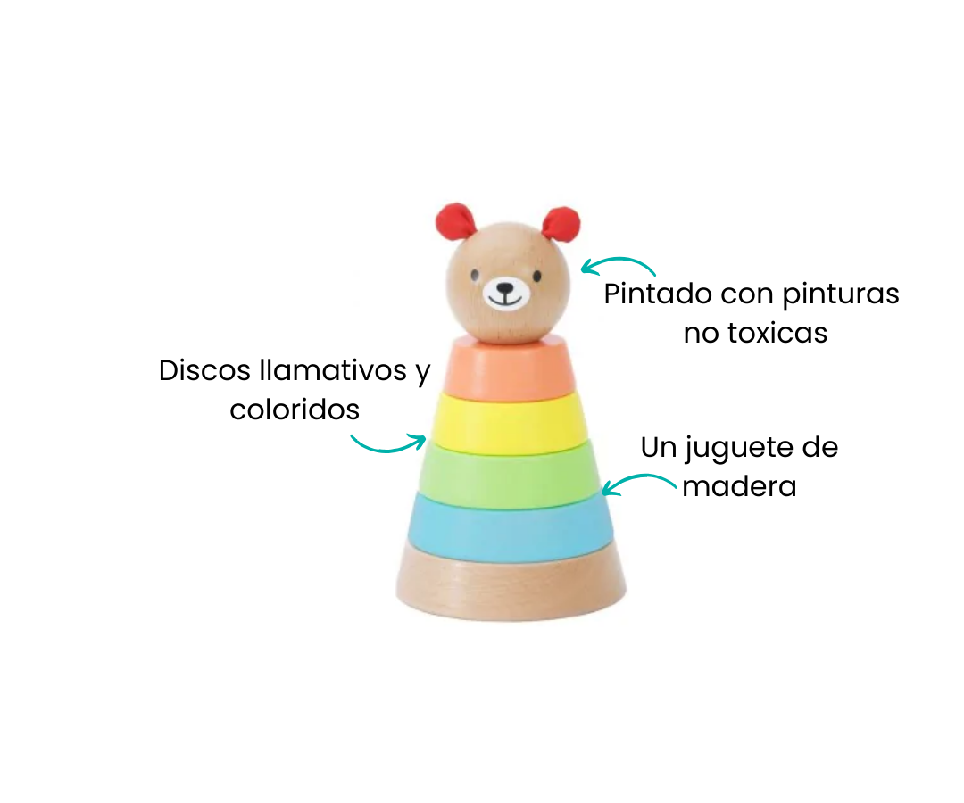 Es un rompecabezas en forma de pirámide que todo niño debería tener. El juego consiste en disponer los discos en una estaca de mayor a menor. Es una opción ideal para estimular la creatividad y el pensamiento lógico de los pequeños.