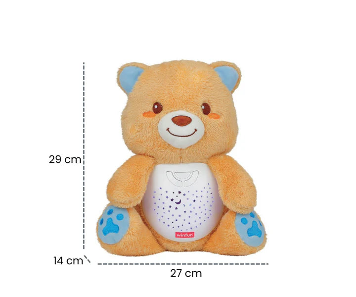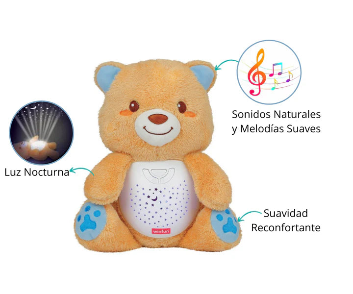 Sumérgete en la magia de las noches con el adorable Oso de Peluche. Con su exclusivo proyector de estrellas y luz nocturna, este tierno compañero transforma la habitación en un fascinante cielo estrellado. Ofrece un brillo suave en diferentes colores que acuna los sueños más dulces, creando un ambiente relajante y reconfortante para ayudar a conciliar el sueño. Este oso de peluche no solo es un amigo para abrazar, sino también un guía hacia un descanso tranquilo y reparador.