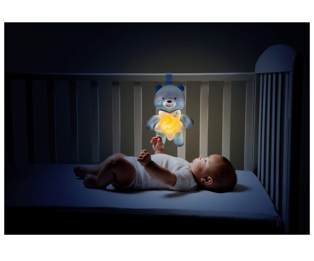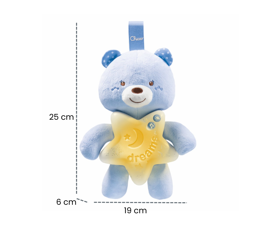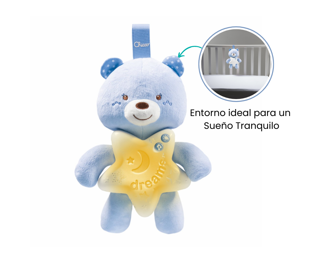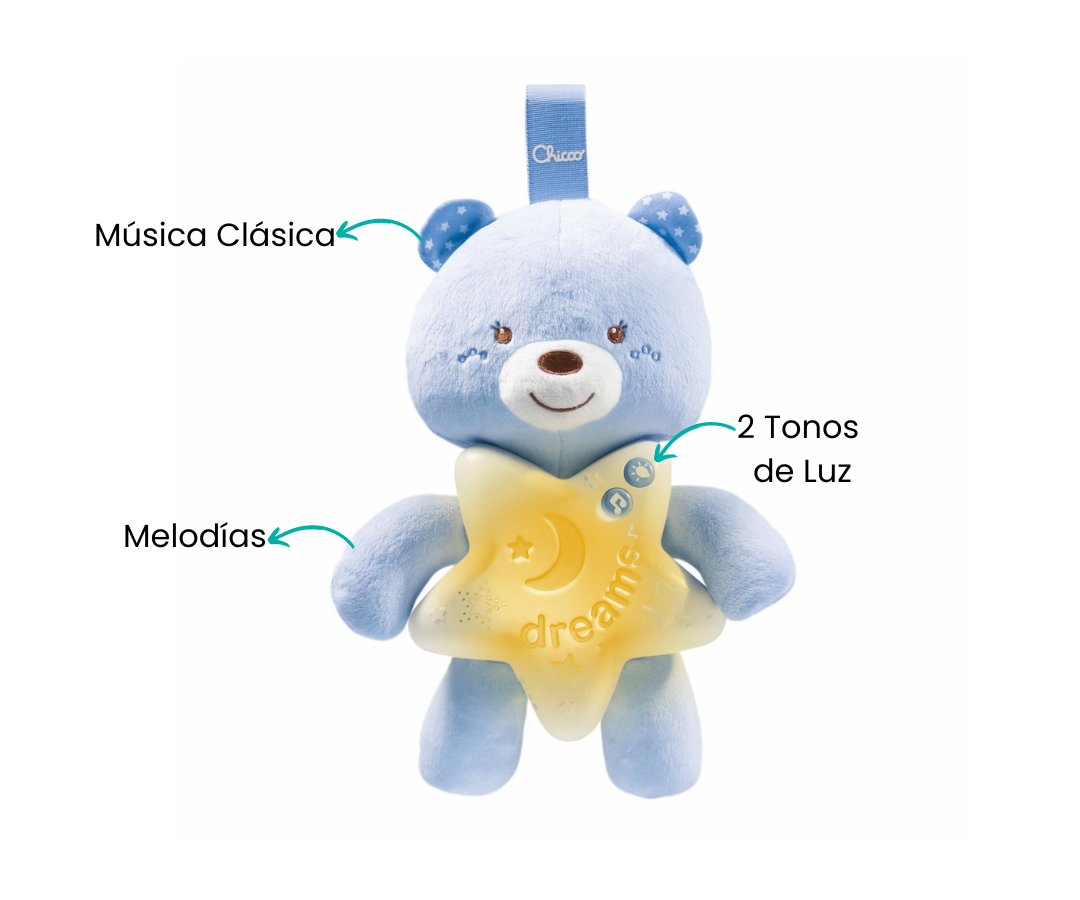 El Osito Buenas Noches de Chicco ofrece una compañía delicada y reconfortante durante la hora de dormir del bebé. Con su versatilidad, brinda tres opciones de uso: música, luces o la combinación de ambos. Ya sea disfrutando de melodías suaves, una suave iluminación o la sinfonía armoniosa de música y luces, este tierno compañero crea el ambiente perfecto para que el bebé se relaje y se sumerja en un sueño tranquilo y reparador.