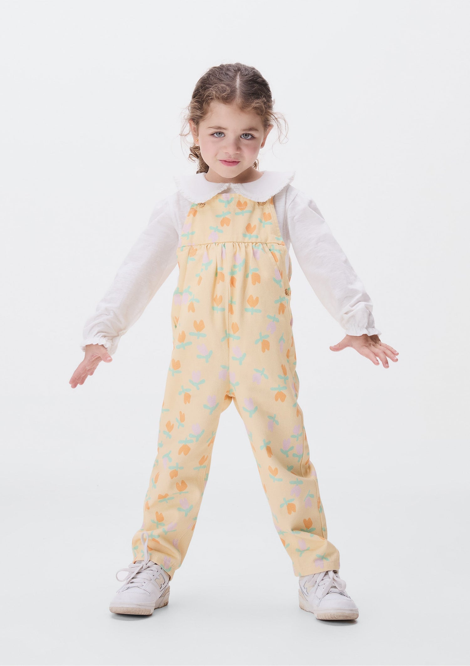 Overol en tela sarga. Modelo largo, ajuste recto y una forma cómoda.