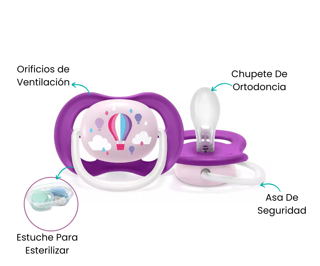 El chupete Ultra Air es una excelente opción para los padres que buscan un chupete diseñado para ser suave con la piel sensible de su bebé. La protección ligera y transpirable del chupete, junto con sus orificios extra grandes, lo convierten en una opción cómoda y segura.