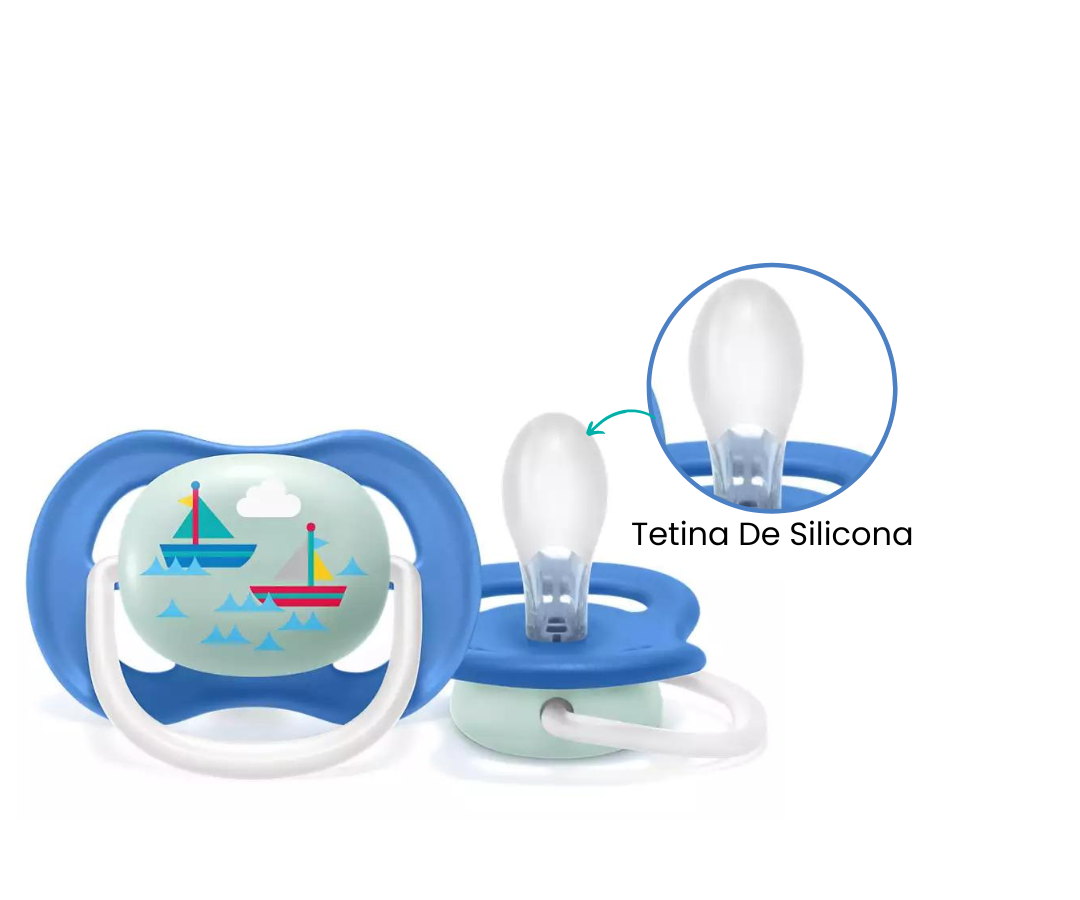 El chupete Philips Avent Ultra Air es un chupete para bebés de 6 a 18 meses. Está diseñado con un escudo liviano y transpirable para la piel sensible, lo que permite el máximo flujo de aire para que la piel del bebé pueda respirar. El chupete tiene orificios extra grandes para mantener la piel seca y cómoda.