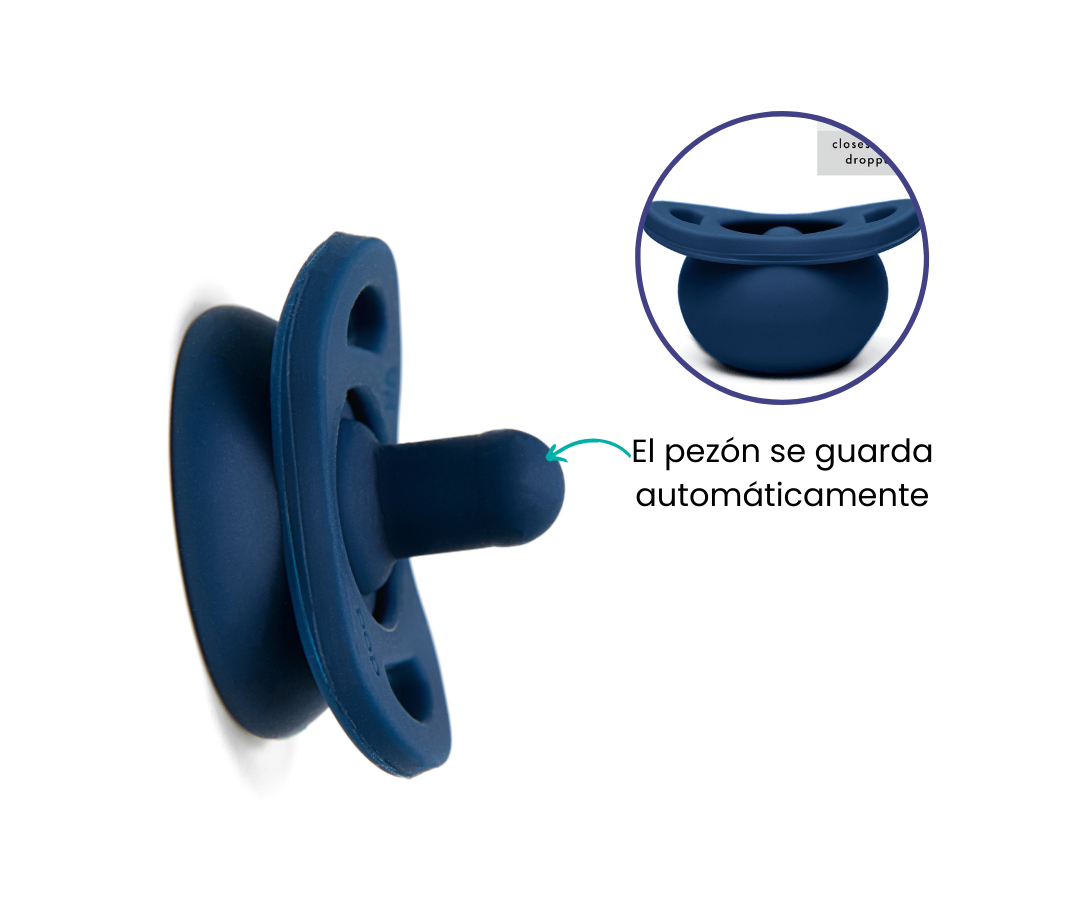 Pacificador con función salta cuando cae, cubre el pacificador con su burbuja protectora de 100% silicona.
