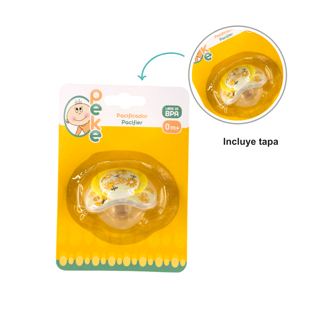 Pacificador de silicón con tapa protectora, libre de BPA.