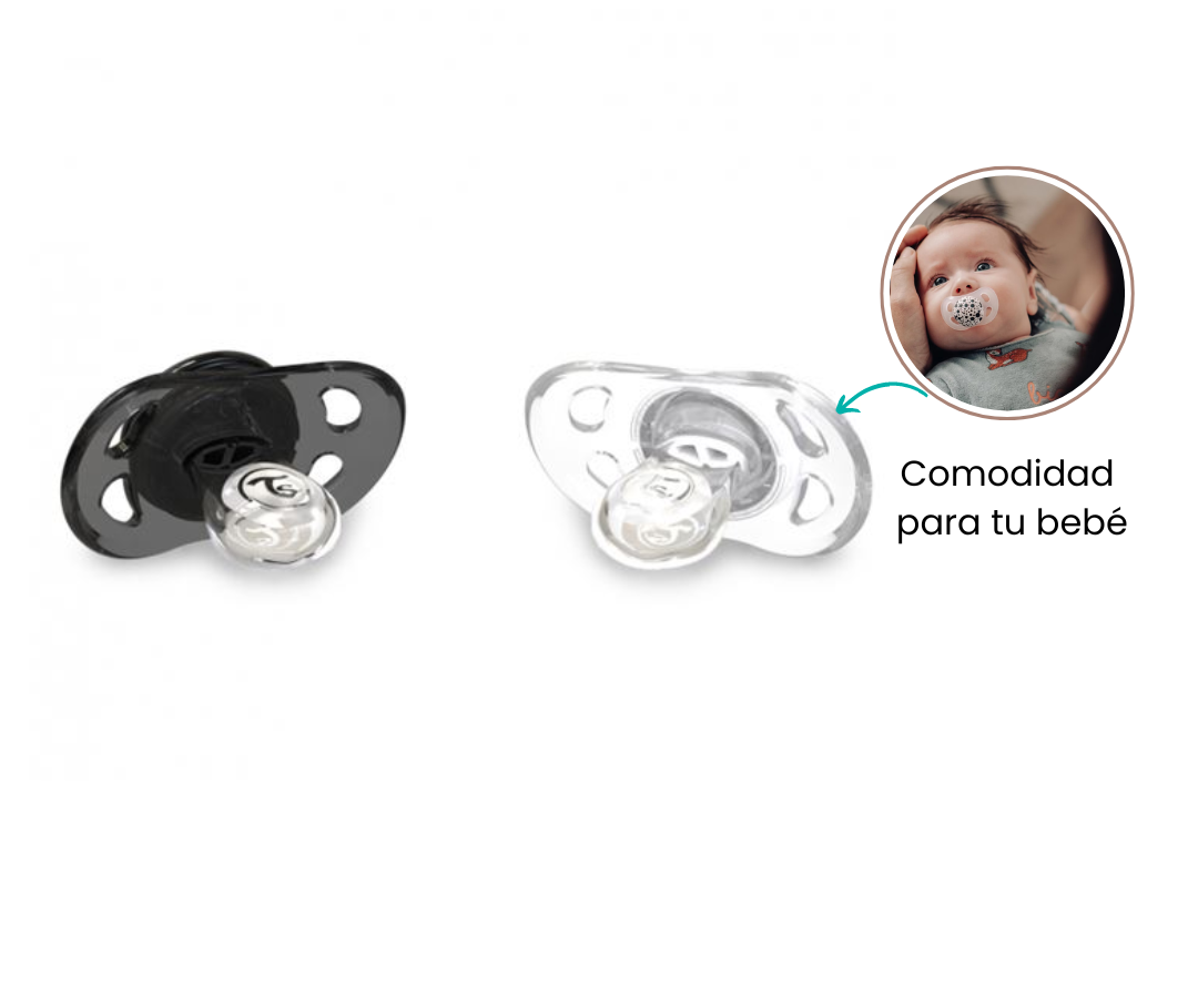Los chupetes están diseñados con una tetina fabricada con la silicona más suave, garantizando la máxima comodidad para tu bebé. Además, cuentan con orificios de ventilación que evitan la irritación de la piel, proporcionando una sensación agradable en todo momento. Su forma ortodóntica está pensada para el correcto crecimiento de los dientes y la mandíbula, brindando un apoyo óptimo para el desarrollo bucal de tu pequeño.