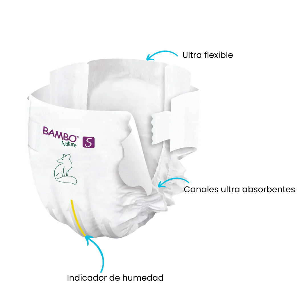 Bambo es una elección consciente para padres preocupados por el bienestar de sus bebés y el medio ambiente. Cuenta con un práctico indicador de humedad y está libre de perfumes y parabenos para minimizar el riesgo de alergias.