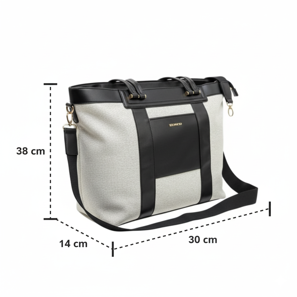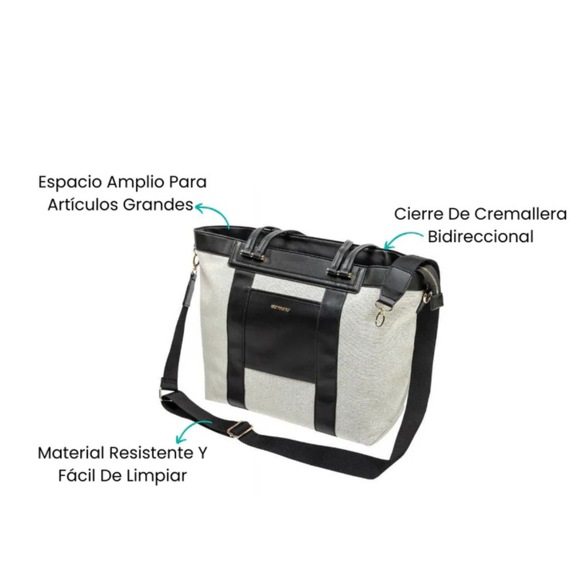 La pañalera tipo tote Bag negra combina estilo moderno y funcionalidad en un solo accesorio, ideal para mamás y papás activos. Su amplio espacio interior permite organizar fácilmente todo lo que el bebé necesita durante el día. Fabricada con materiales resistentes y de fácil limpieza, ofrece practicidad sin perder elegancia. Perfecta tanto para salidas cortas como para jornadas más largas, acompañándote con comodidad y diseño en cada momento.