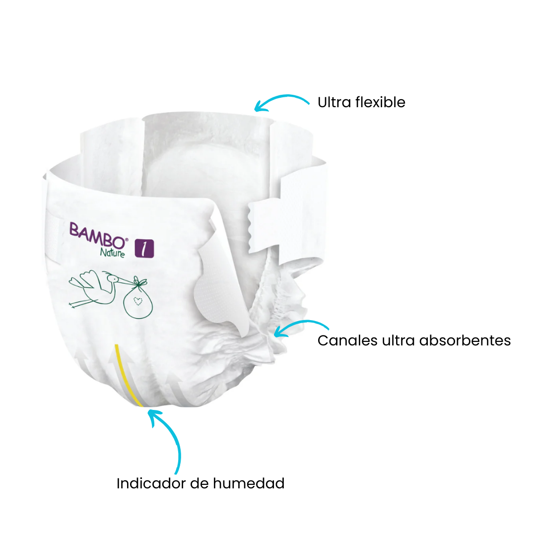Bambo es una elección consciente para padres preocupados por el bienestar de sus bebés y el medio ambiente. Cuenta con un práctico indicador de humedad y está libre de perfumes y parabenos para minimizar el riesgo de alergias.
