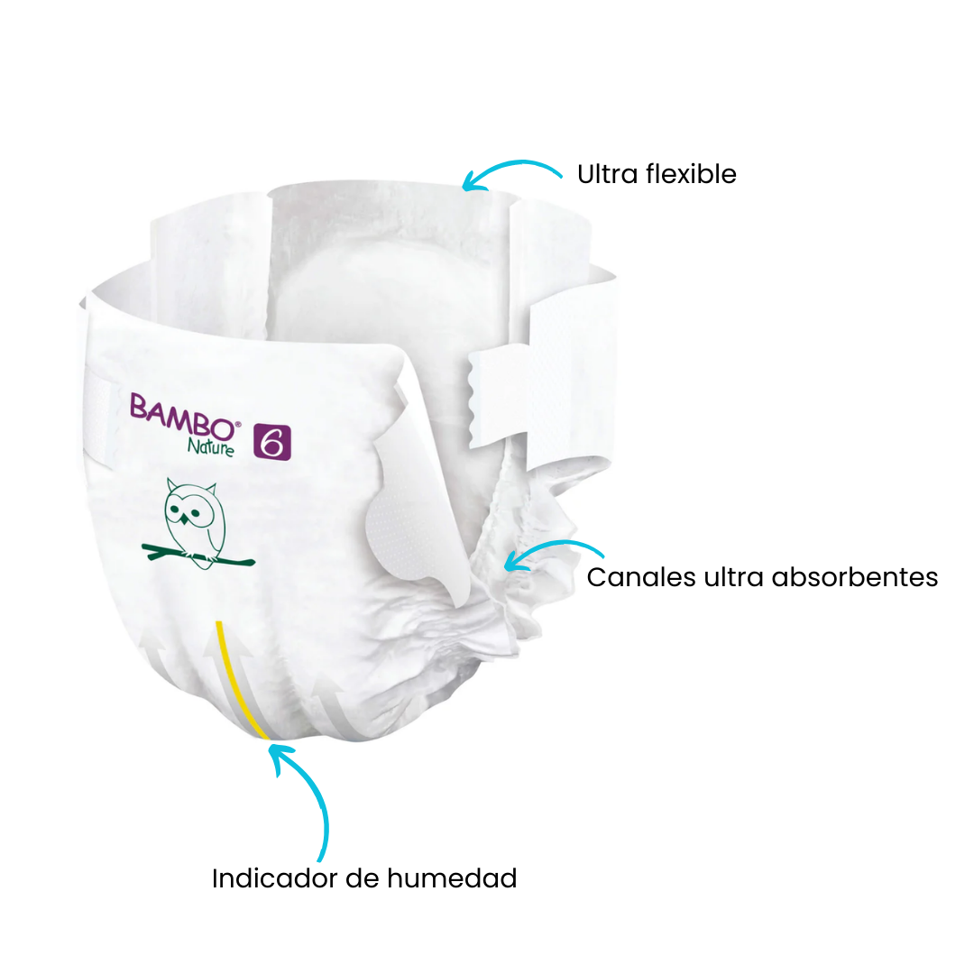 Bambo es una elección consciente para padres preocupados por el bienestar de sus bebés y el medio ambiente. Cuenta con un práctico indicador de humedad y está libre de perfumes y parabenos para minimizar el riesgo de alergias.