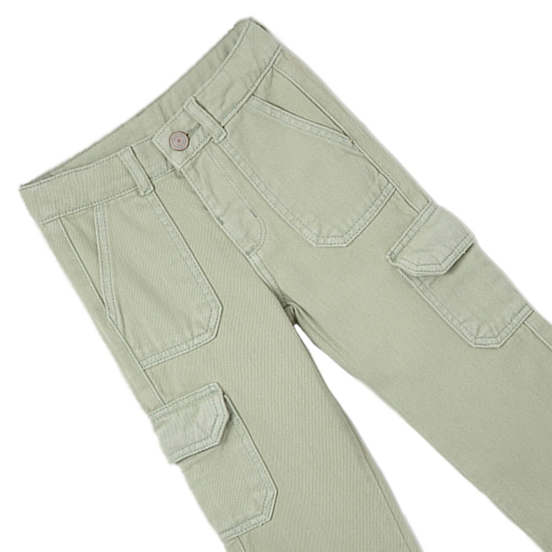 Pantalón con bolsillos de parche. Tiene abertura con cremallera y botón. Confeccionado en tejido de sarga con elastano.
