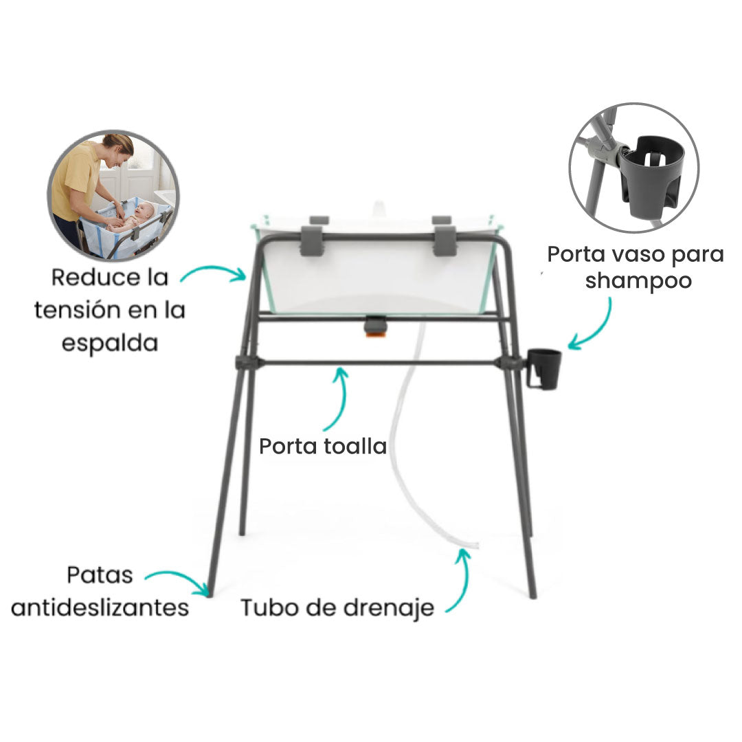 El soporte diseñado para el Stokke® Flexi Bath®, está pensado para brindarte una experiencia de baño cercana y cómoda junto a tu bebé. Con una funcionalidad excepcional, este soporte te acompaña desde los primeros baños de tu recién nacido hasta que puedan estar de pie por sí mismos.