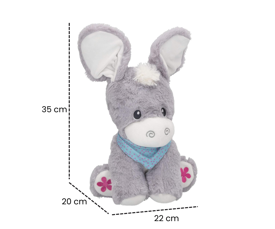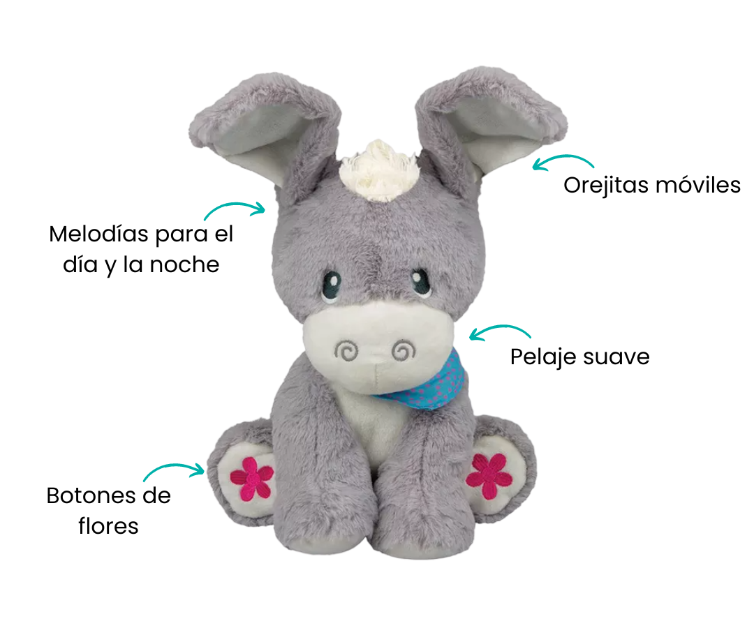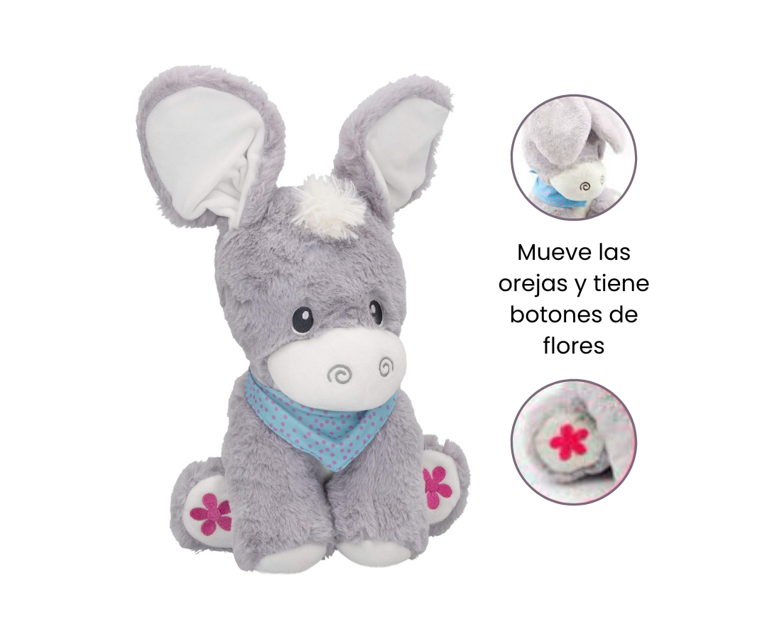 Burrito de peluche blandito Winfun con 2 modalidades que le permiten mover las orejitas y cantar alegres melodías para el día y para la noche.