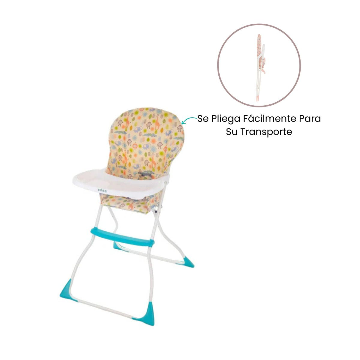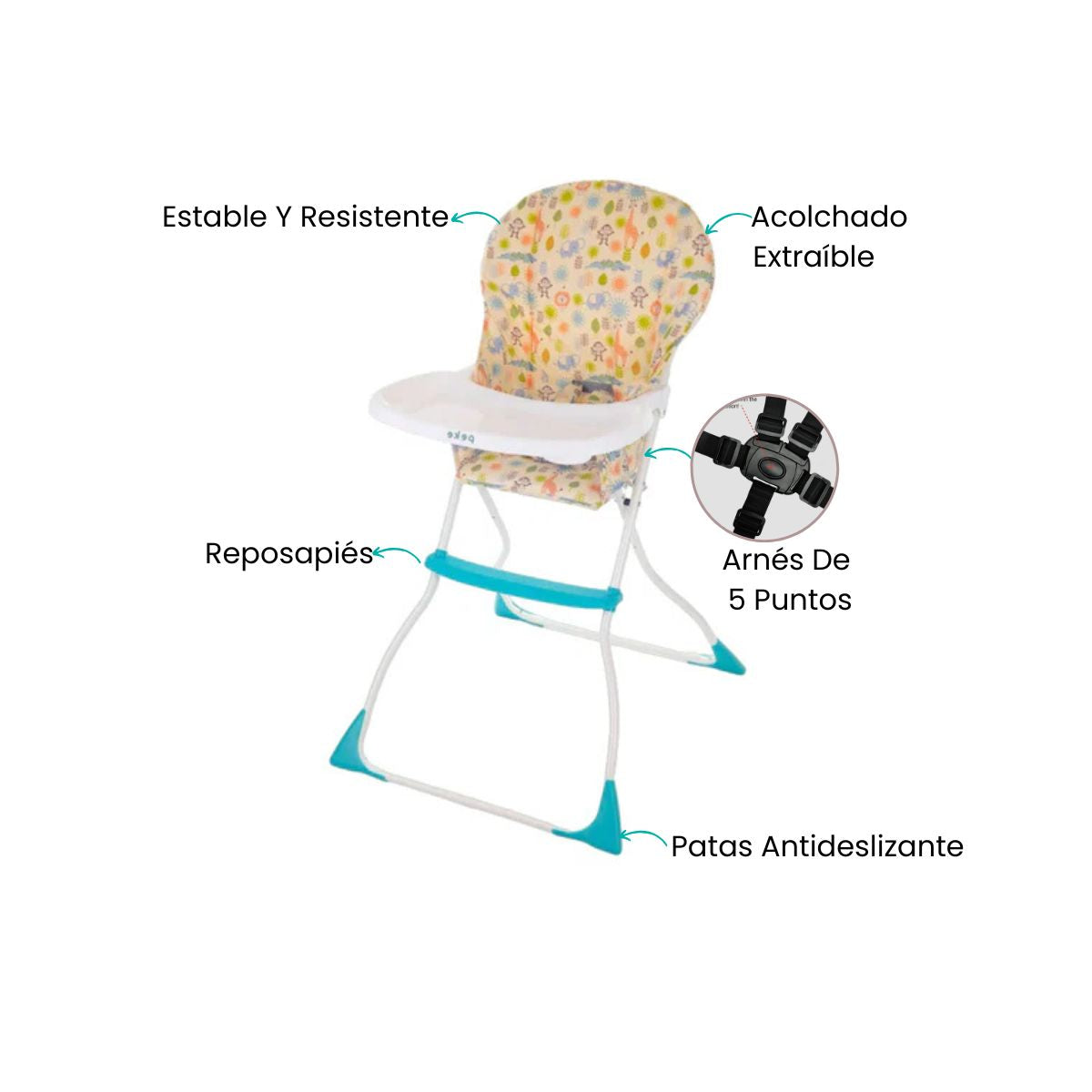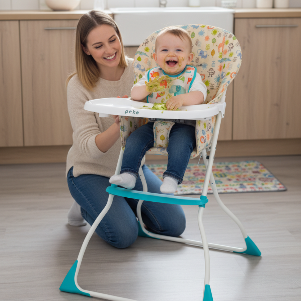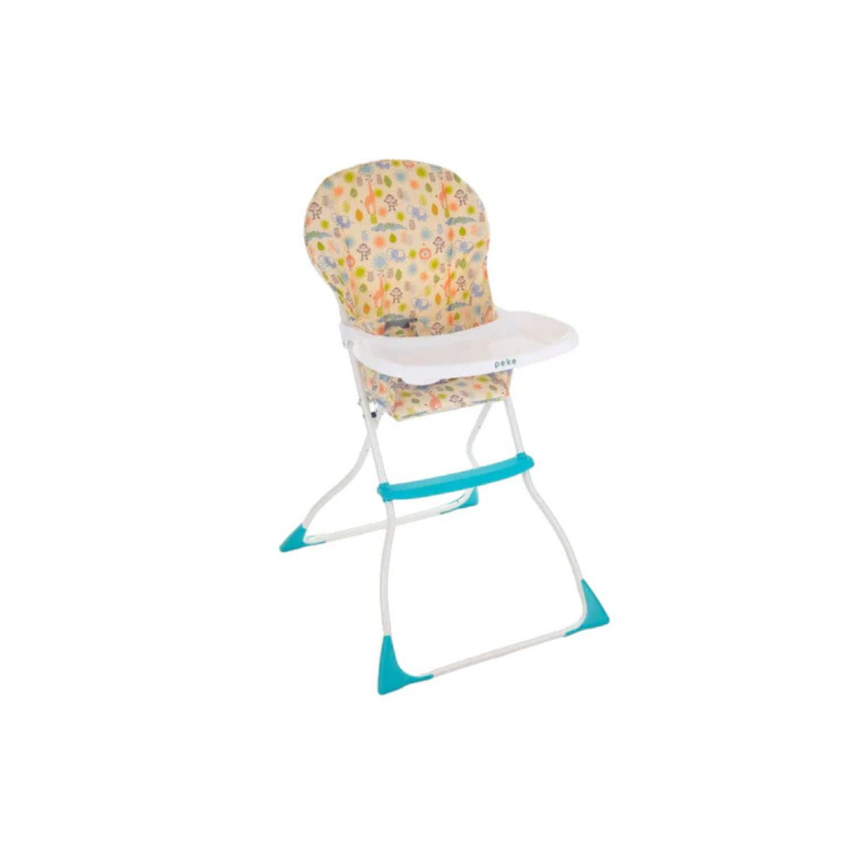 La silla de comer Peke ofrece un diseño funcional y seguro, ideal para acompañar las primeras etapas de alimentación del bebé. Su estructura ligera y estable brinda el soporte necesario durante las comidas, mientras su estampado colorido con motivos de animales aporta un toque alegre y divertido al momento de comer.