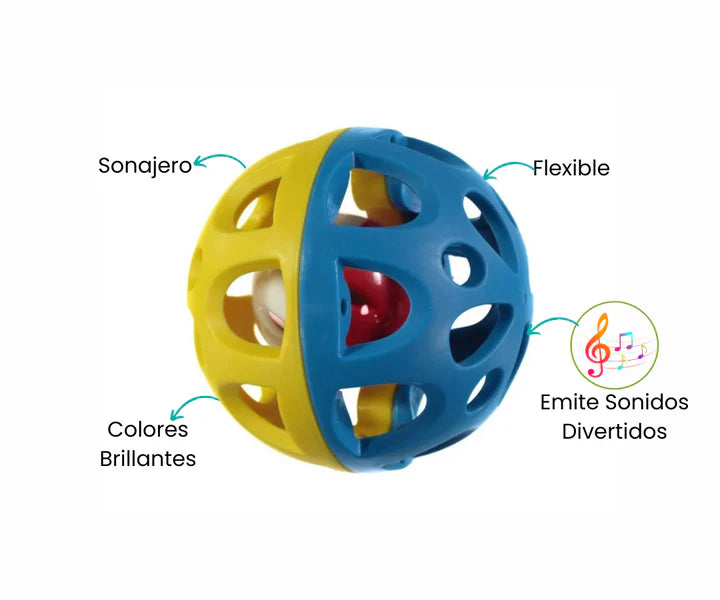 Con su diseño llamativo y colores brillantes, la pelota flexible es una atracción instantánea para los bebés. Además de estimular visualmente, esta pelota sonajero emite sonidos divertidos cuando se sacude, lo que añade una dimensión auditiva al juego. Su forma flexible y liviana permite que los pequeños la agarren fácilmente, fomentando el desarrollo de las habilidades motoras.