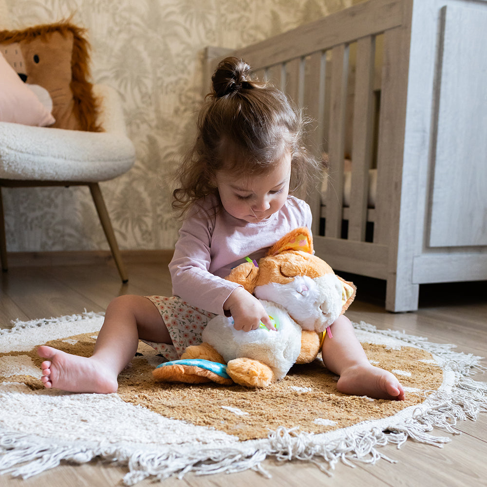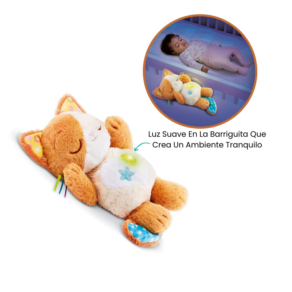 Este suave peluche está diseñado para acompañar a tu bebé en sus momentos de descanso. Sus delicados movimientos de cabeza y tripita transmiten calma y seguridad, ayudando a conciliar el sueño. Su textura aterciopelada brinda una sensación de confort que relaja y reconforta al pequeño. Ideal para crear una rutina nocturna tranquila y llena de ternura.
