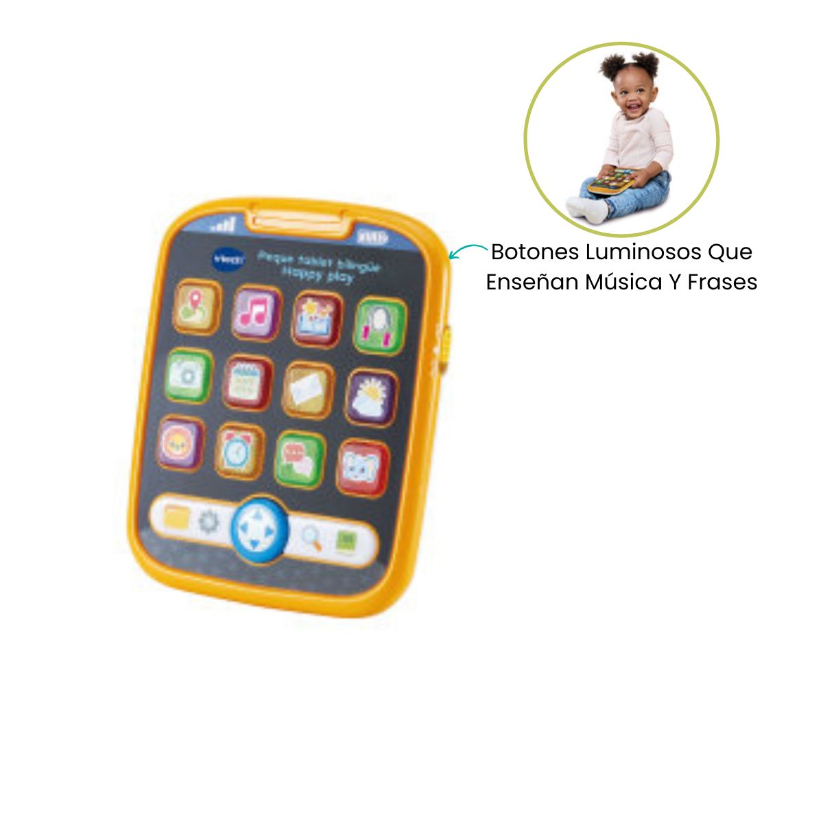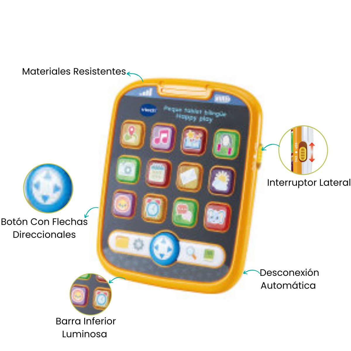 La Peque Tablet Bilingüe Happy Play de VTech convierte el aprendizaje en una experiencia llena de luz y color. Con botones luminosos y un diseño inspirado en las tablets reales, invita a los niños a explorar mientras aprenden. Enseña palabras, sonidos y canciones en español e inglés de forma entretenida y natural. Ideal para estimular el desarrollo del lenguaje y la curiosidad desde los primeros años.