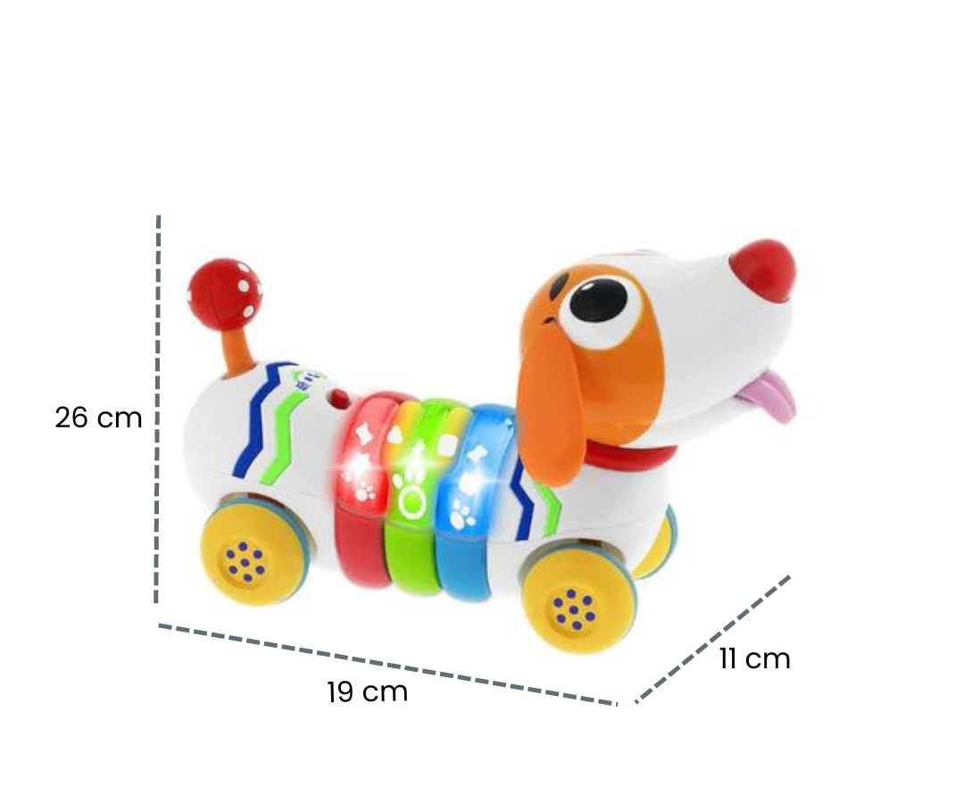Con su diseño encantador y amigable, el Perrito Radio Control se convertirá en la mascota favorita de tu bebé. A medida que tu pequeño interactúa con este juguete, explorará el mundo de la causa y el efecto mientras controla el movimiento del perrito mediante el control remoto. Esto no solo les proporciona entretenimiento, sino que también fortalece sus habilidades motoras globales y les enseña conceptos básicos de coordinación.