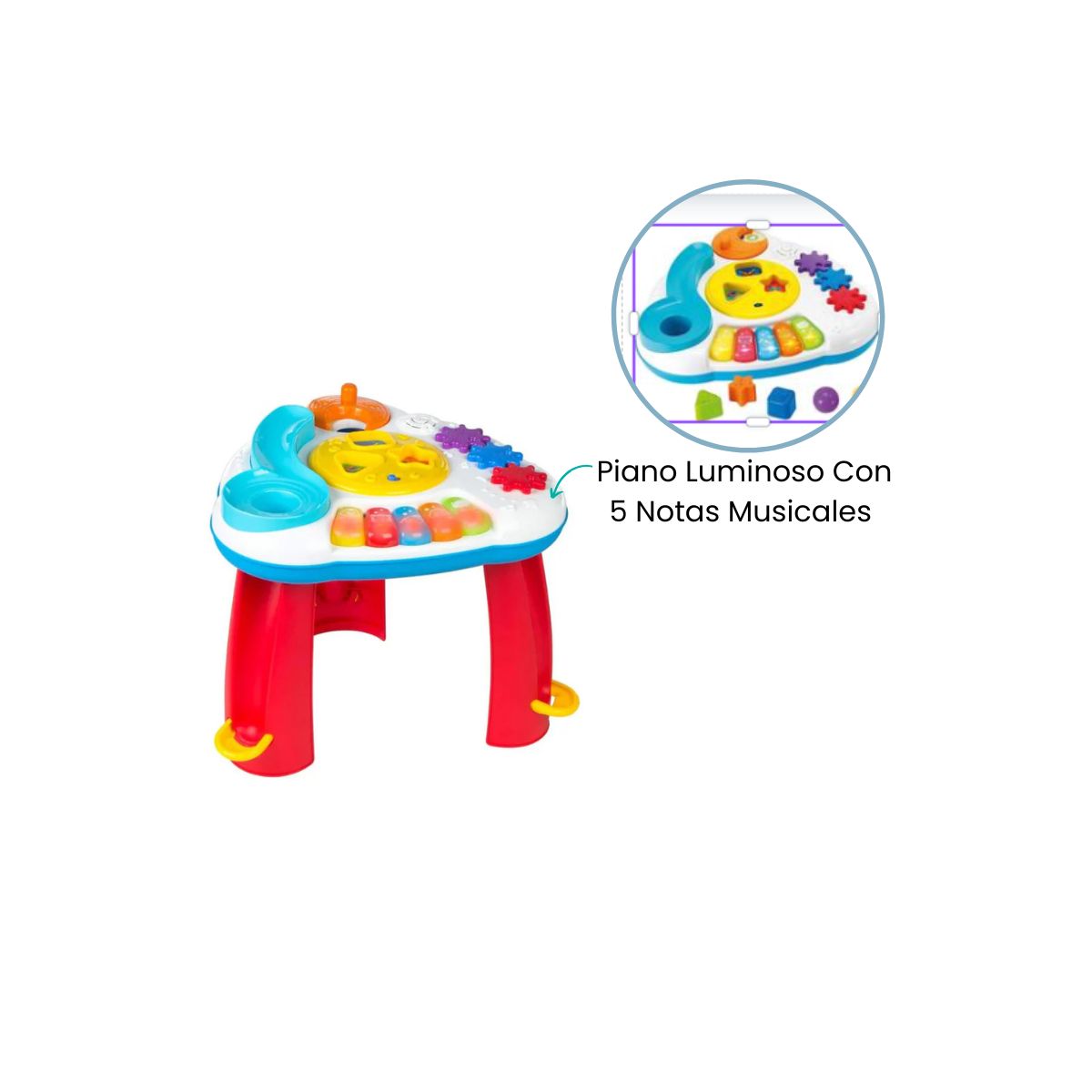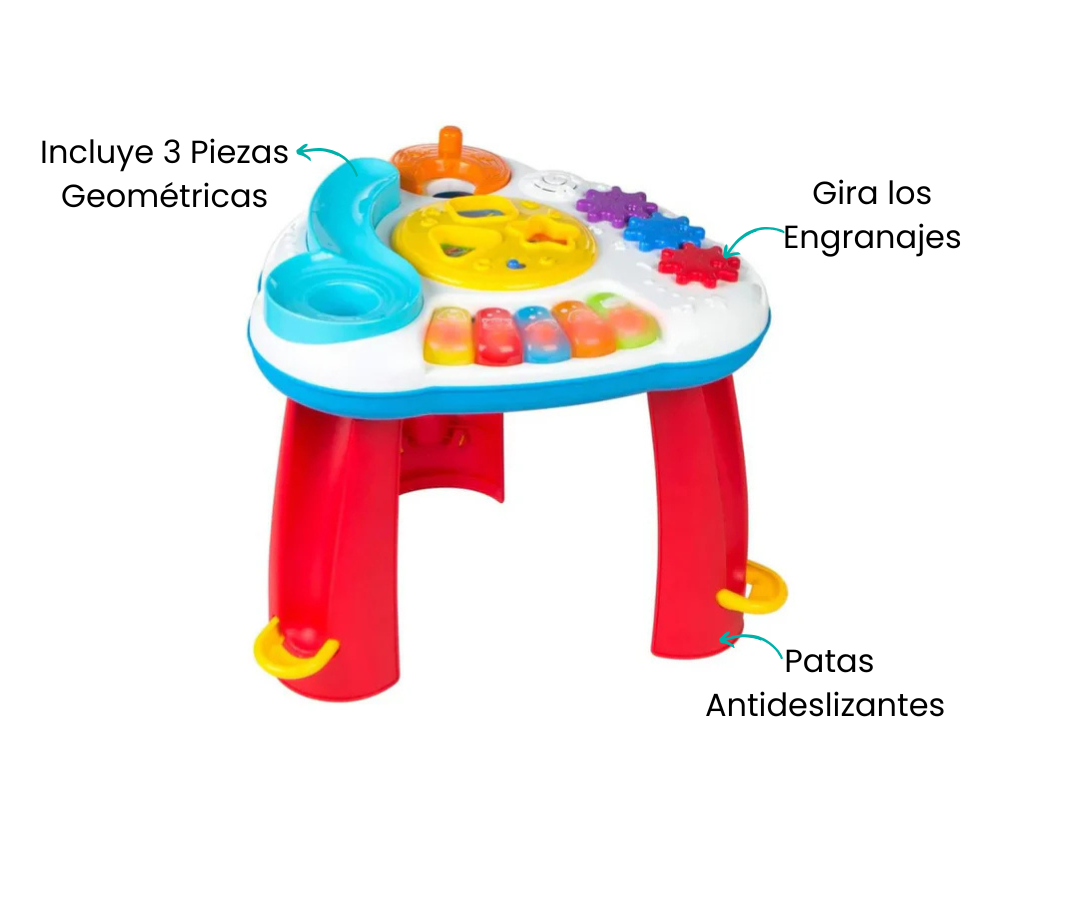 La mesa de actividades Winfun está diseñada para despertar la curiosidad de los más pequeños mediante colores, sonidos y melodías que estimulan su atención. Sus múltiples opciones fomentan el aprendizaje de formas, acciones y asociaciones mientras juegan. La estructura elevada impulsa la motricidad global, permitiendo que el niño se mueva alrededor para descubrir cada función. Además, sus luces y texturas brindan una completa estimulación sensorial que apoya el desarrollo cognitivo. Un centro de juego ideal para acompañar su crecimiento de manera divertida.