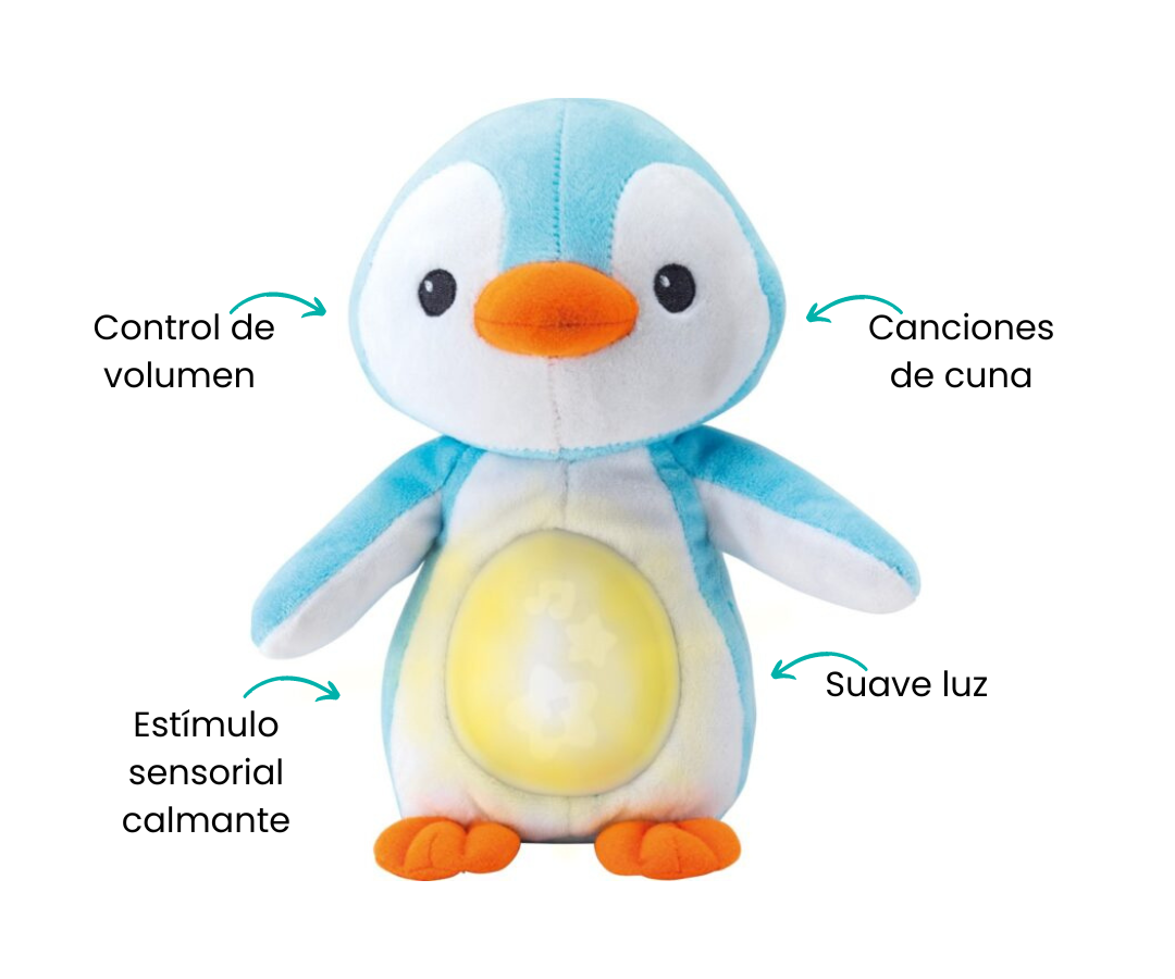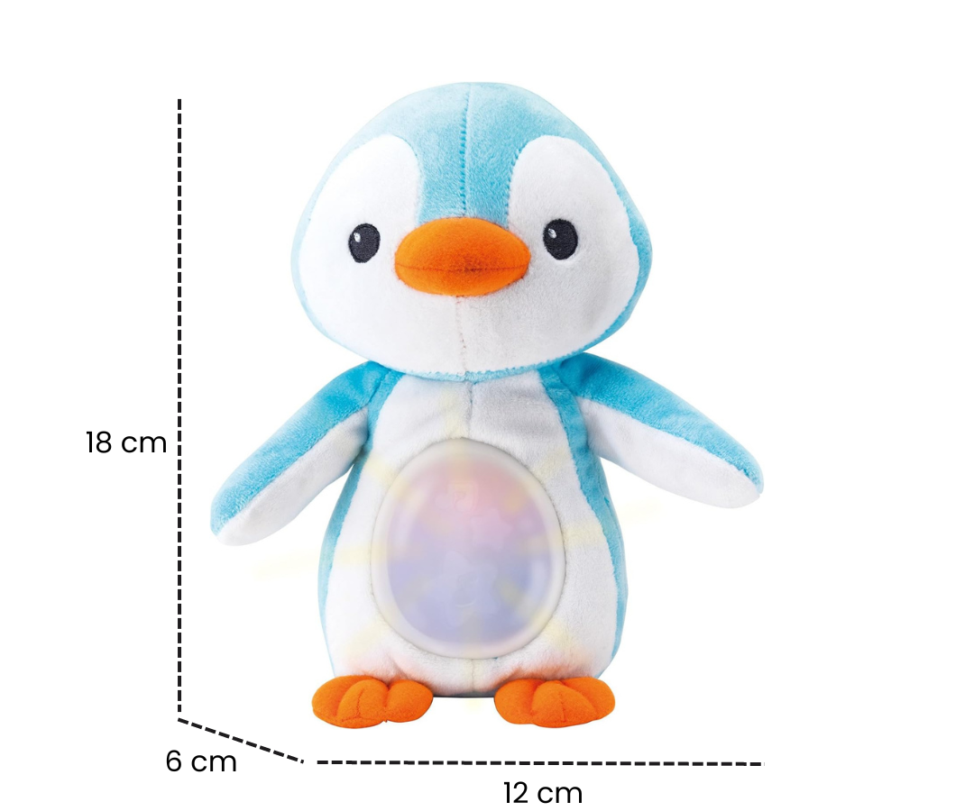 Presiona la barriga del pequeño pingüino para sumergir la habitación en una suave luz, creando una atmósfera relajante para la hora de dormir.