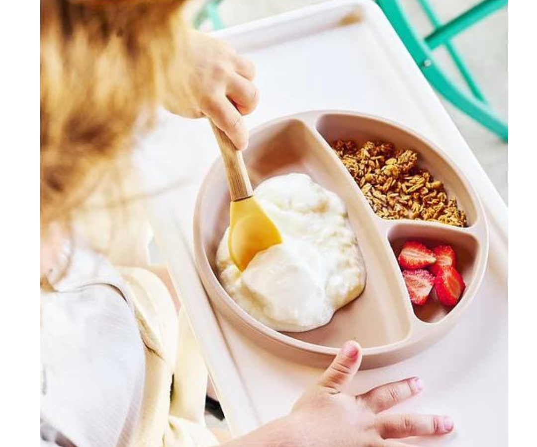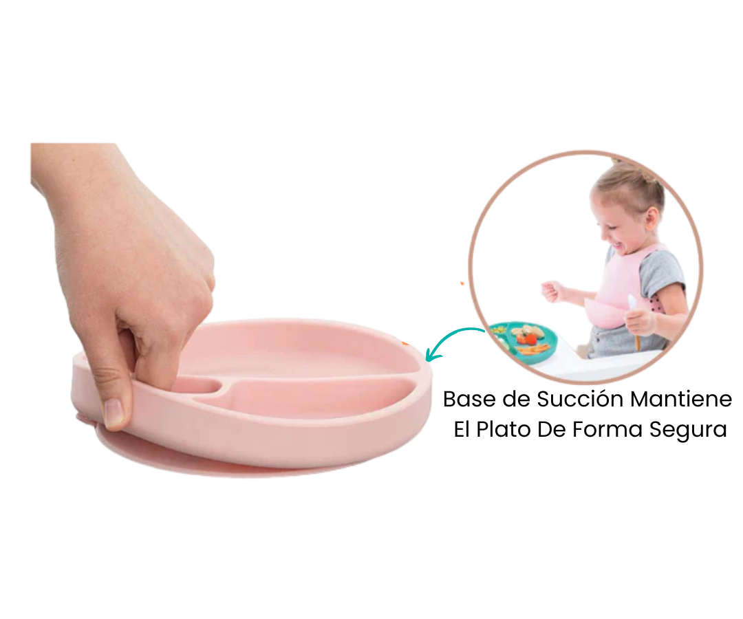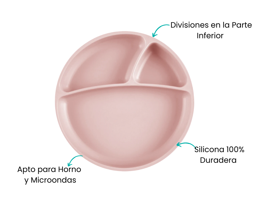 Los Platos con división de MinikOiOi no solo destacan por su bonito diseño, sino que también ofrecen una practicidad excepcional. Gracias a las divisiones en la parte inferior del plato, garantizamos que tu hijo no pueda levantar ni tirar el plato de la mesa.