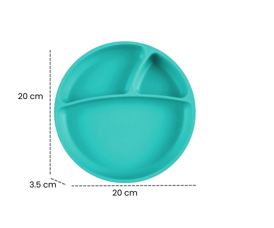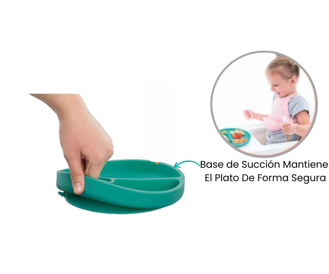 Los Platos con división de MinikOiOi no solo destacan por su bonito diseño, sino que también ofrecen una practicidad excepcional. Gracias a las divisiones en la parte inferior del plato, garantizamos que tu hijo no pueda levantar ni tirar el plato de la mesa.