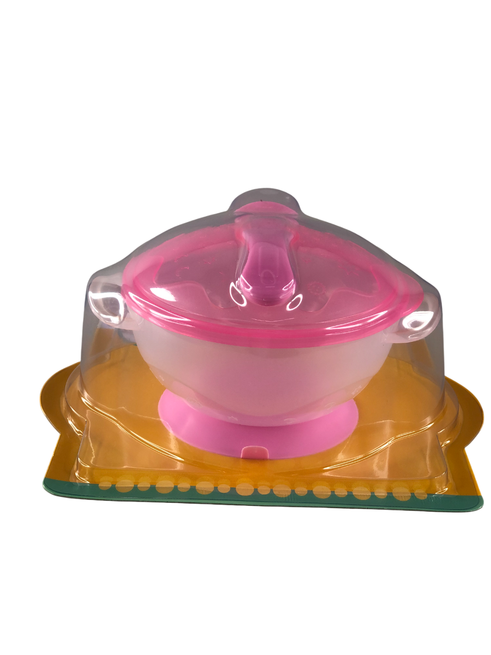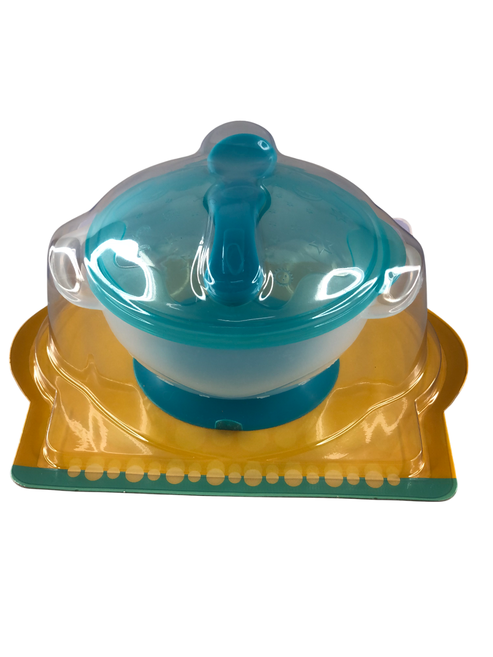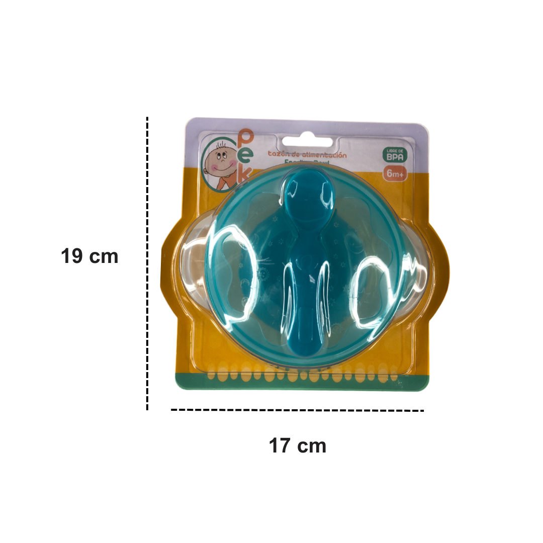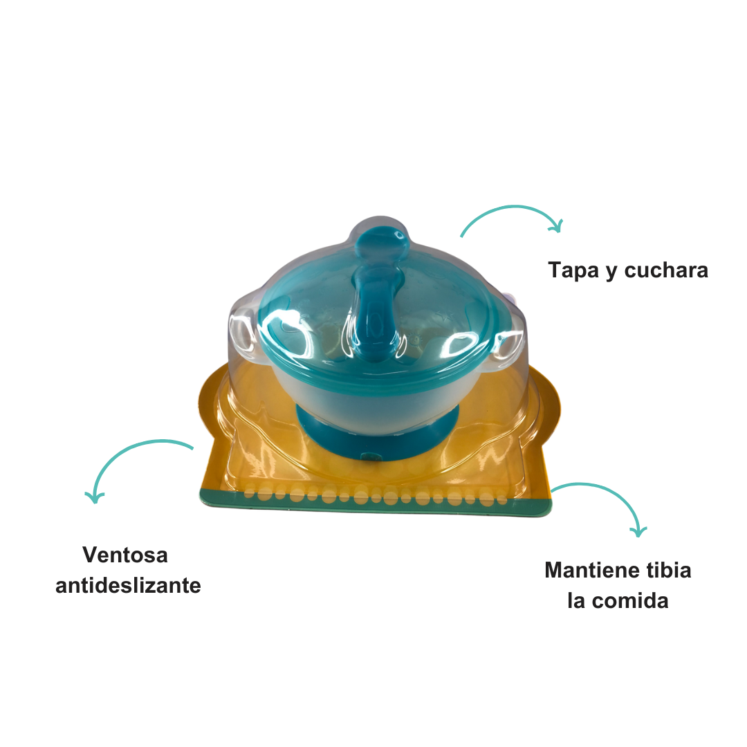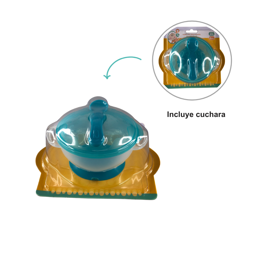 Plato con tapa, cuchara y ventosa, libre de BPA.