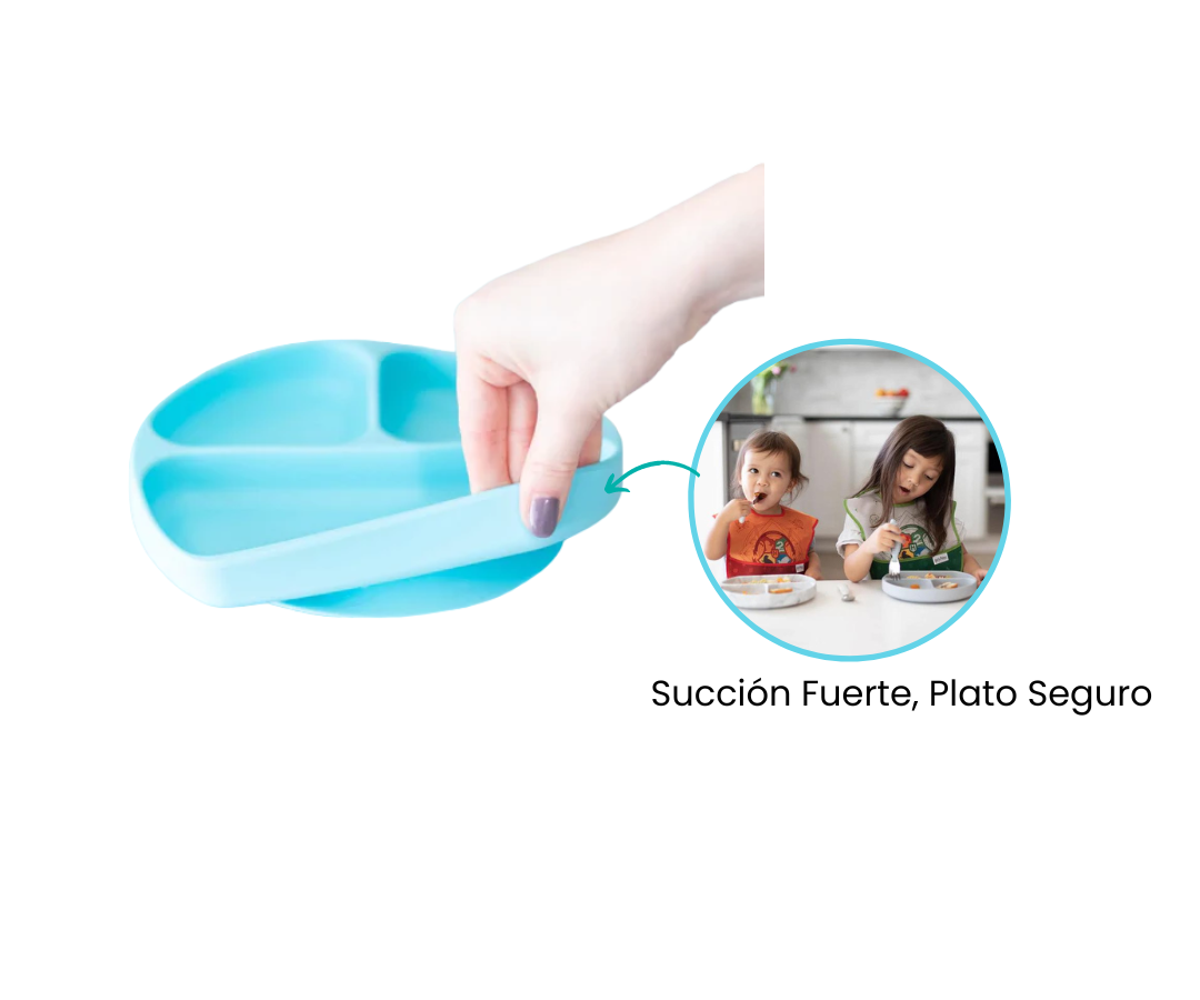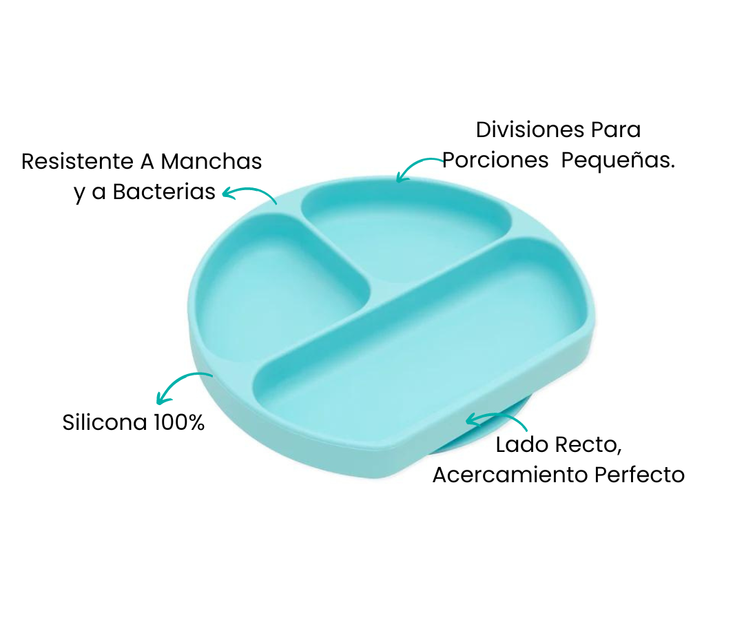 El plato de succión de silicona es la elección perfecta para los pequeños que están dando sus primeros pasos hacia la independencia alimentaria. Con un diseño dividido, este plato ofrece el tamaño ideal para porciones de niños pequeños, facilitando la experiencia de aprendizaje.