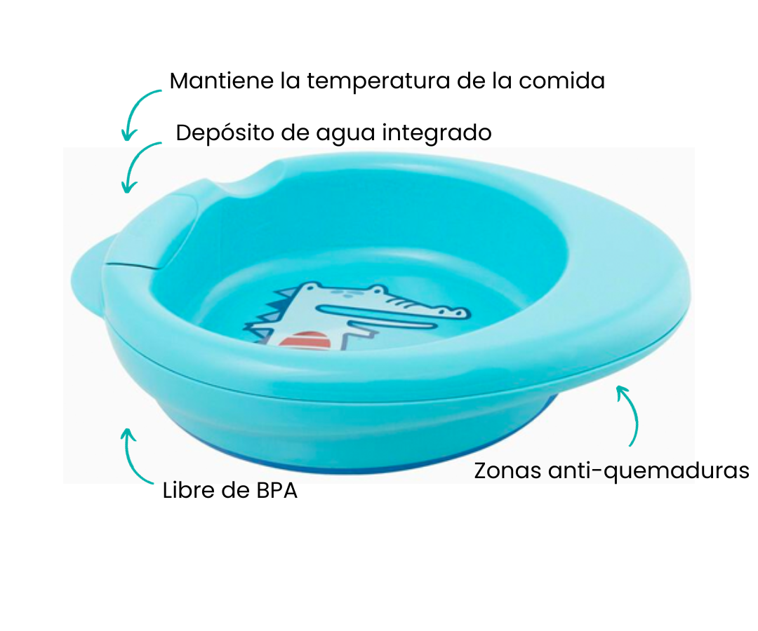 Disfruta de la funcionalidad del plato con depósito de agua integrado, diseñado para mantener la temperatura de la comida durante períodos prolongados. Además, se garantiza que el plato está libre de BPA, brindándote una experiencia culinaria segura y sin preocupaciones.