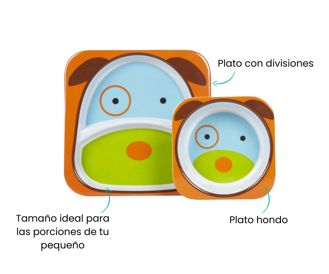 • Platos Zoo: Dos secciones divididas separan la comida