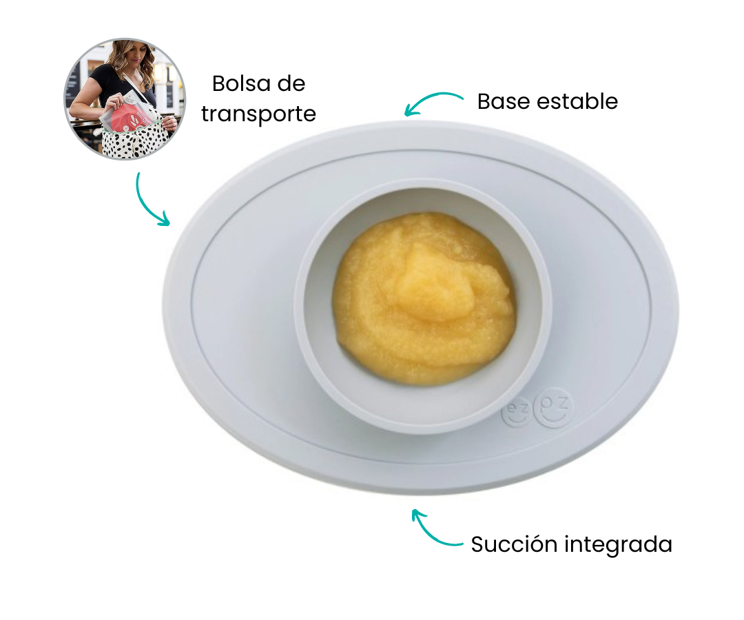 Su función de succión reduce los derrames, mientras que la base estable promueve la auto alimentación y el desarrollo de la motricidad fina. Se adapta a todas las bandejas de tronas, es compacto y liviano, es ideal para cenas y viajes.