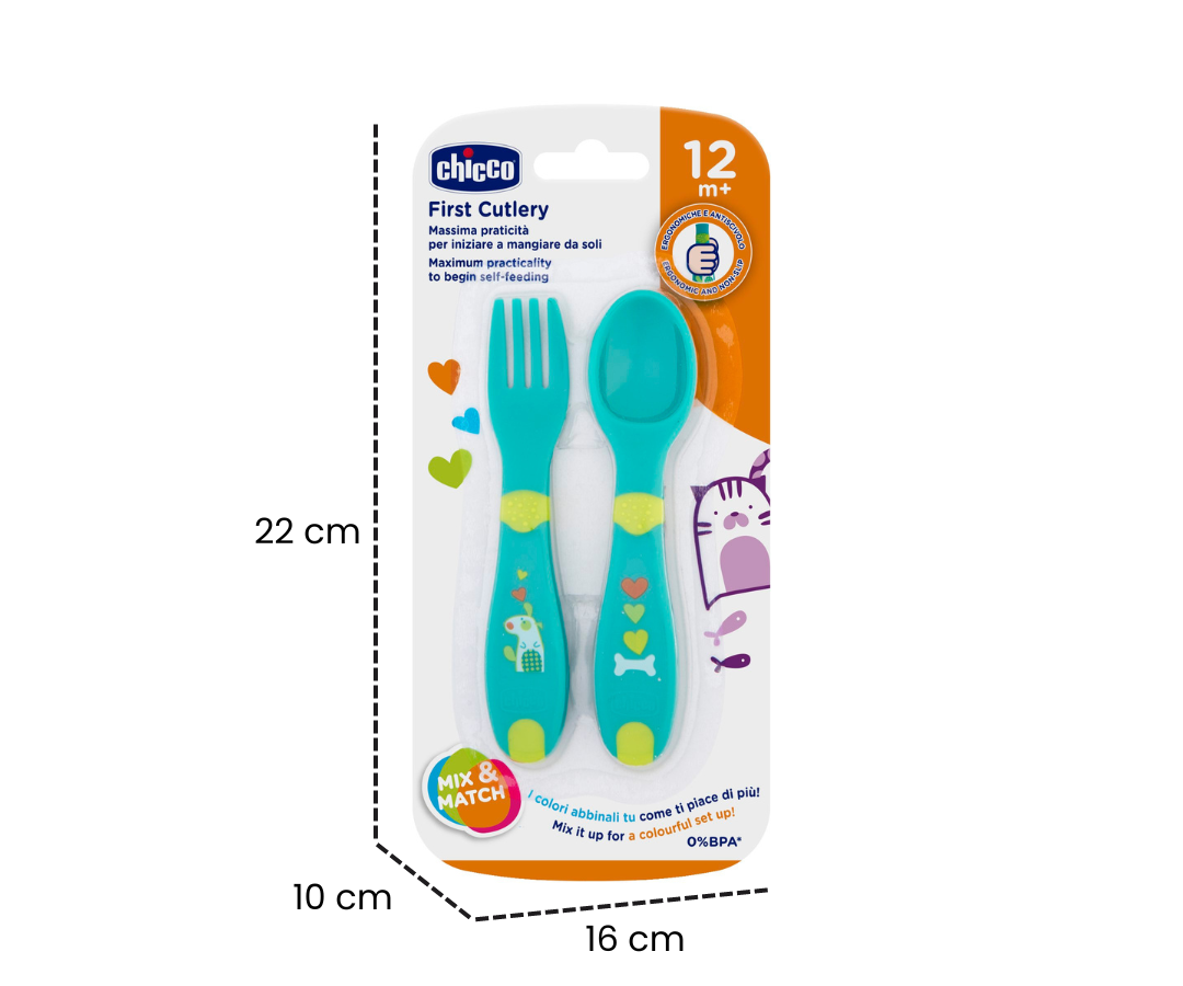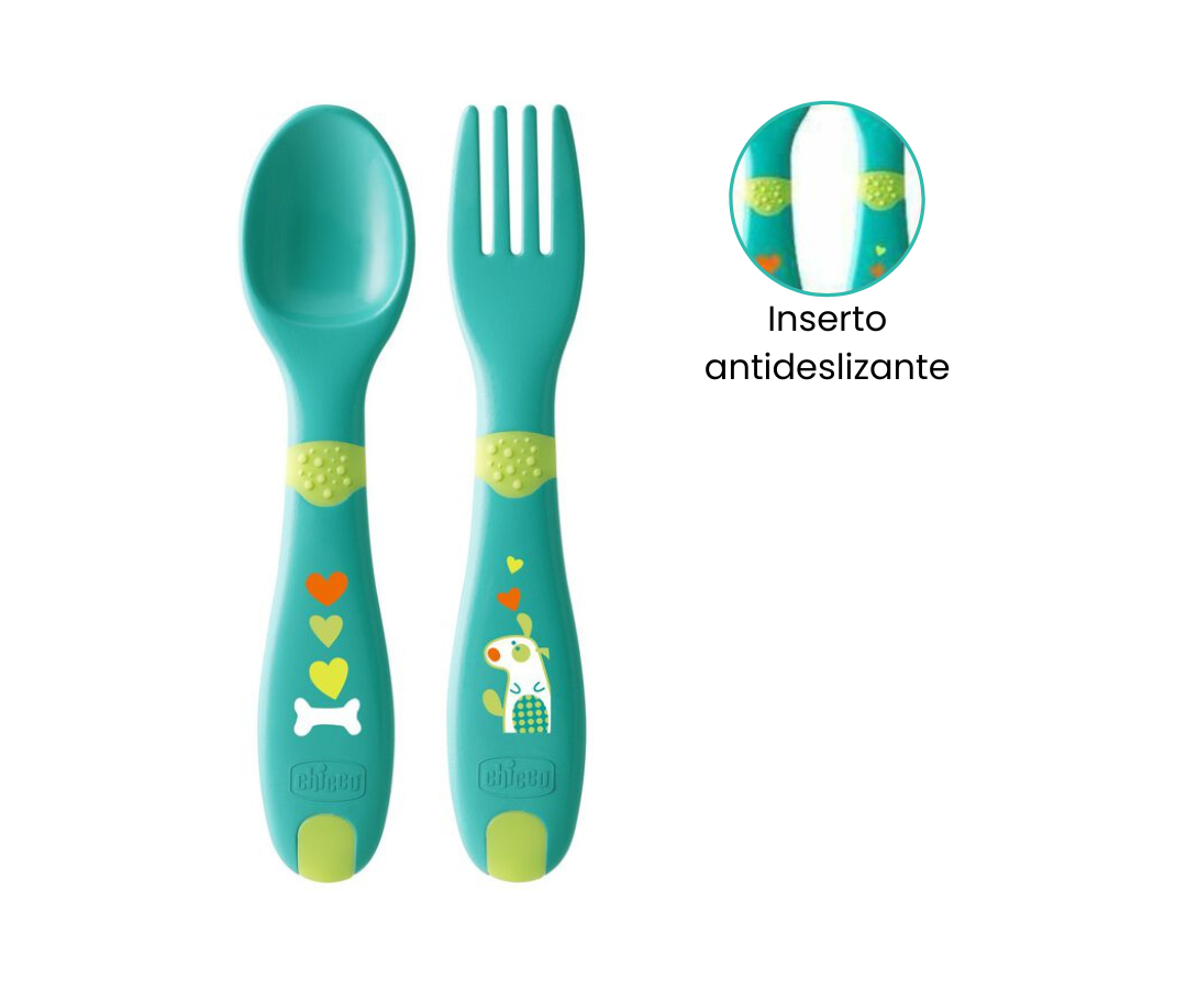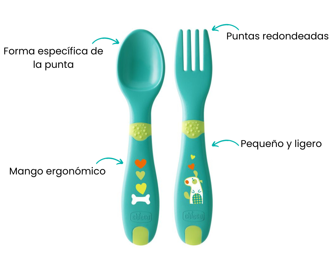 El primer cubierto ideal para la auto alimentación, ha sido diseñado para ayudar al bebé a aprender a comer de forma adecuada e independiente como un adulto.
