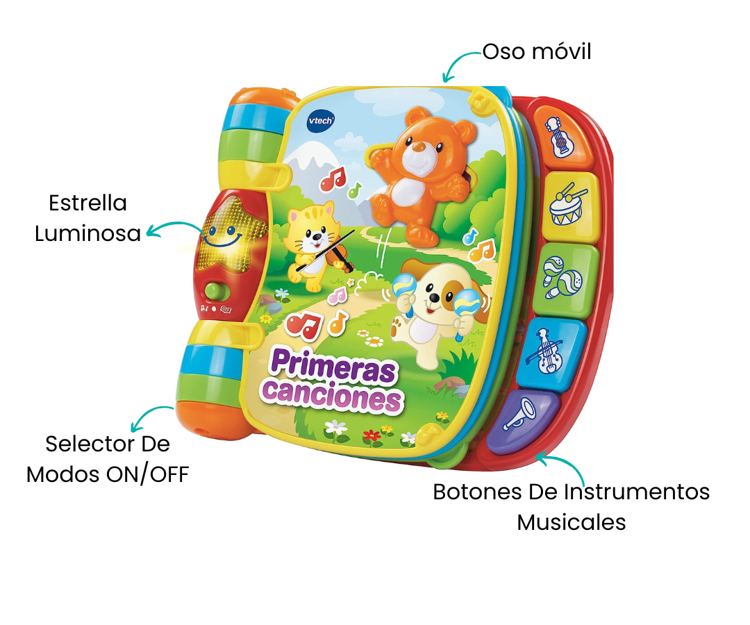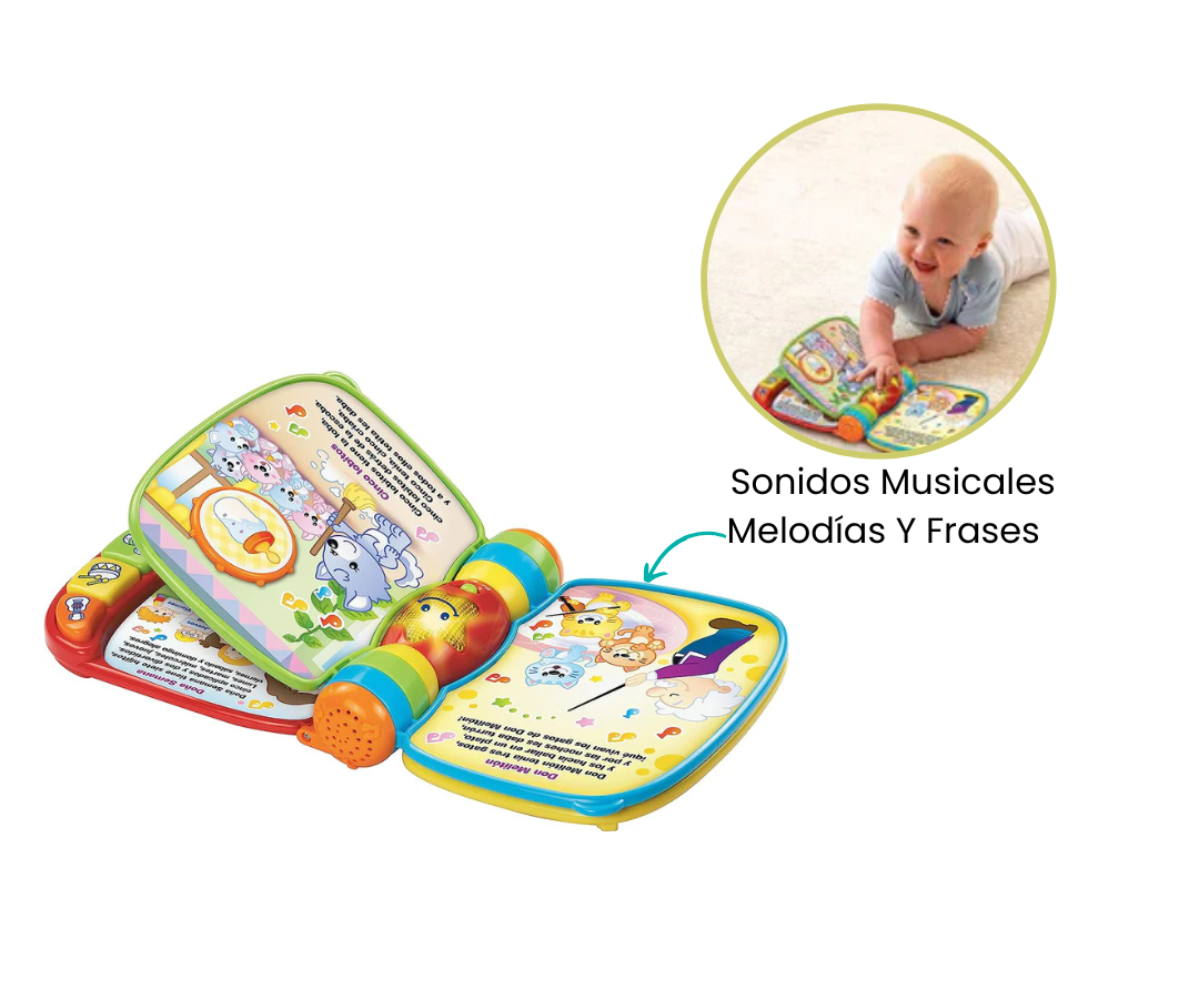 Libro musical con las canciones más populares de VTech brinda entretenimiento y estimulación sensorial a los niños en sus primeras etapas de desarrollo.