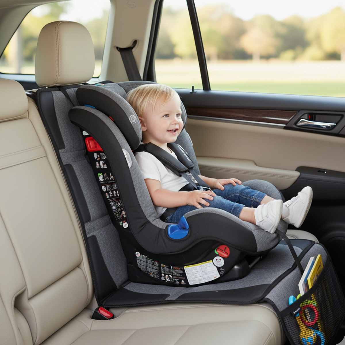 Mantén tu vehículo impecable con el protector de asiento infantil, diseñado especialmente para usar con sillas de auto. Este accesorio ofrece una barrera resistente entre la tapicería y el asiento del niño, evitando manchas, raspones o marcas por el uso diario. Ideal para padres que buscan cuidar su auto sin renunciar a la comodidad y seguridad de los pequeños durante los viajes.