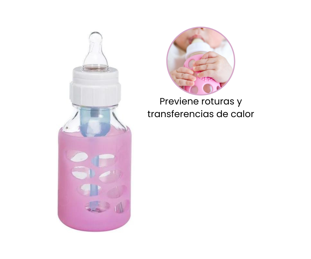 Fabricadas al 100% con silicona, estas fundas son fáciles de agarrar y proporcionan una capa adicional de seguridad al prevenir roturas y transferencias de calor no deseadas. Con este producto, puedes estar seguro de que los biberones de tu bebé estarán protegidos de arañazos y roturas en todo momento.