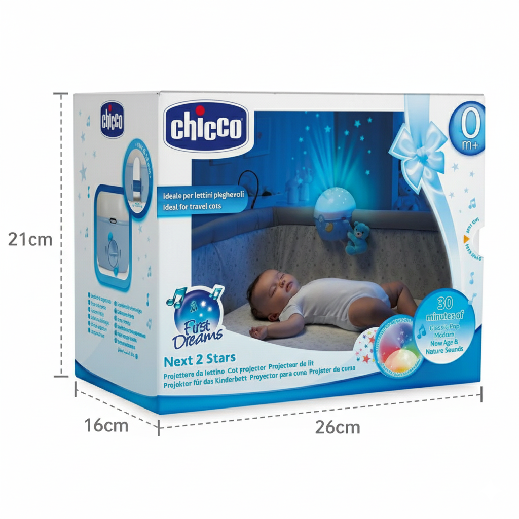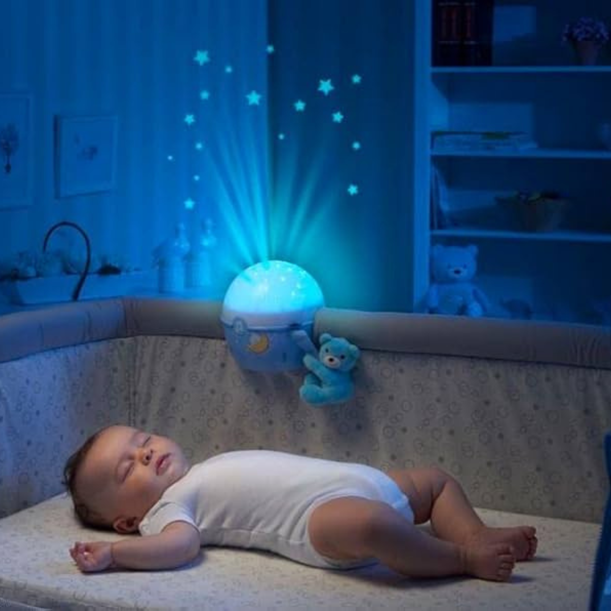 Chicco Proyector 2 en 1: un cielo de luz, música y ternura para acompañar cada noche.