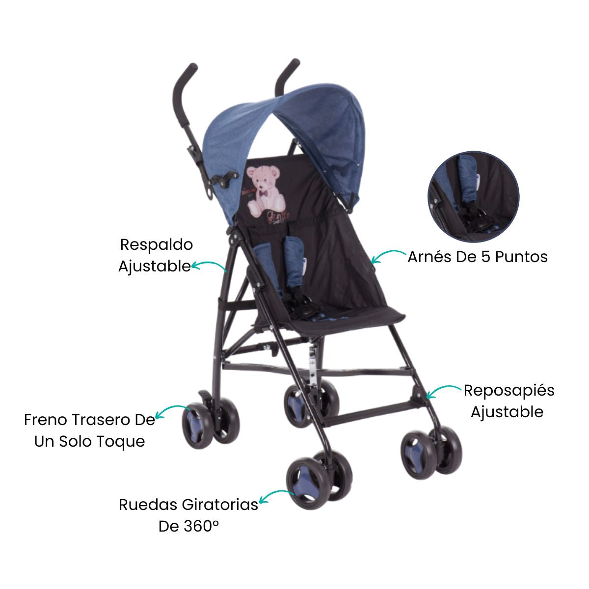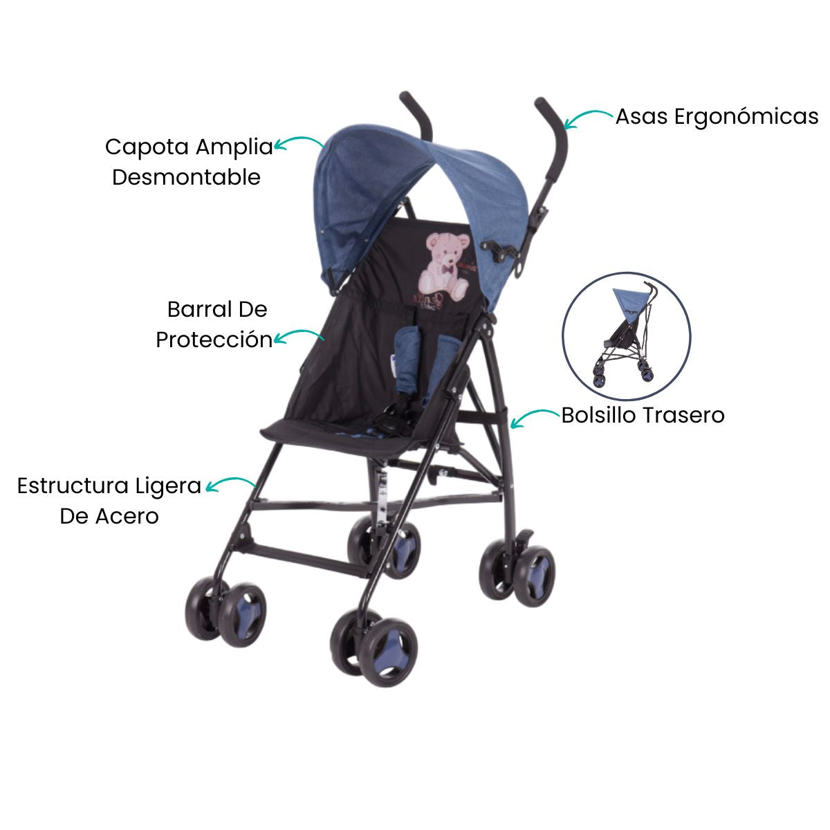 Cuando sales por la ciudad, el parque o hacer compras, este cochecito te facilita cada trayecto con ligereza y comodidad; es ideal para esas mañanas agobiantes, tardes de paseo o visitas inesperadas sin cargar demasiado peso. Proporciona tranquilidad a los padres gracias a su estructura estable, protección solar generosa y materiales suaves, haciendo que cada salida sea placentera para el niño.