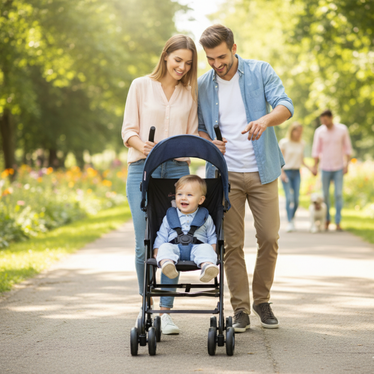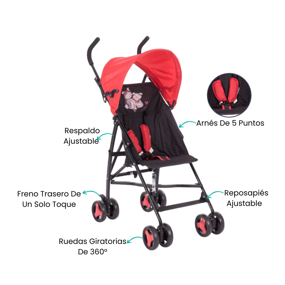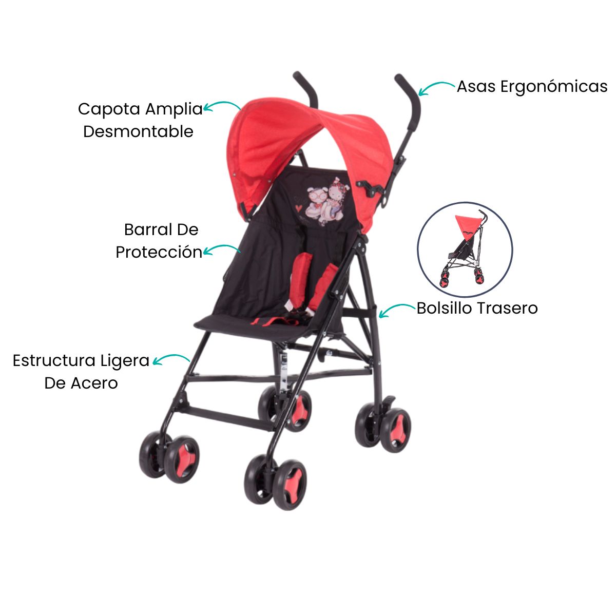 Cuando sales por la ciudad, el parque o hacer compras, este cochecito te facilita cada trayecto con ligereza y comodidad; es ideal para esas mañanas agobiantes, tardes de paseo o visitas inesperadas sin cargar demasiado peso. Proporciona tranquilidad a los padres gracias a su estructura estable, protección solar generosa y materiales suaves, haciendo que cada salida sea placentera para el niño.
