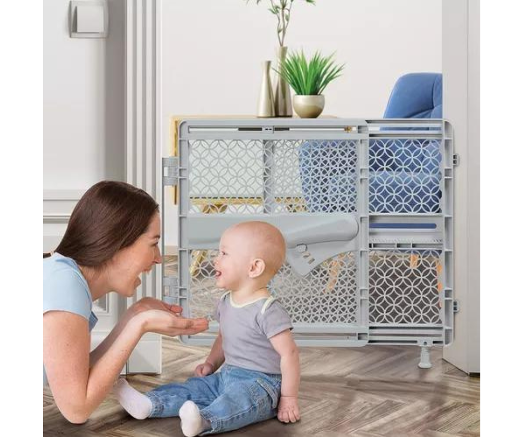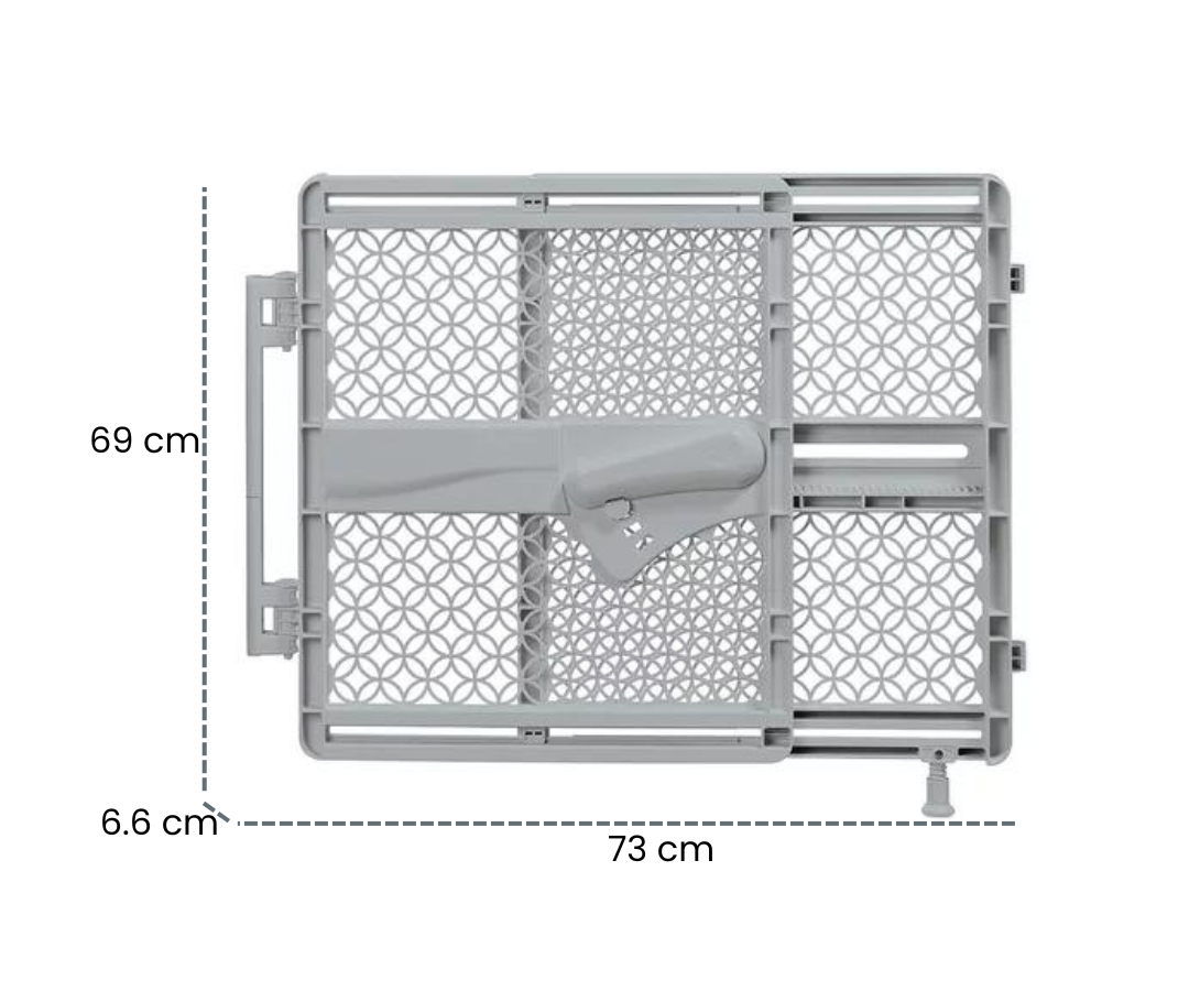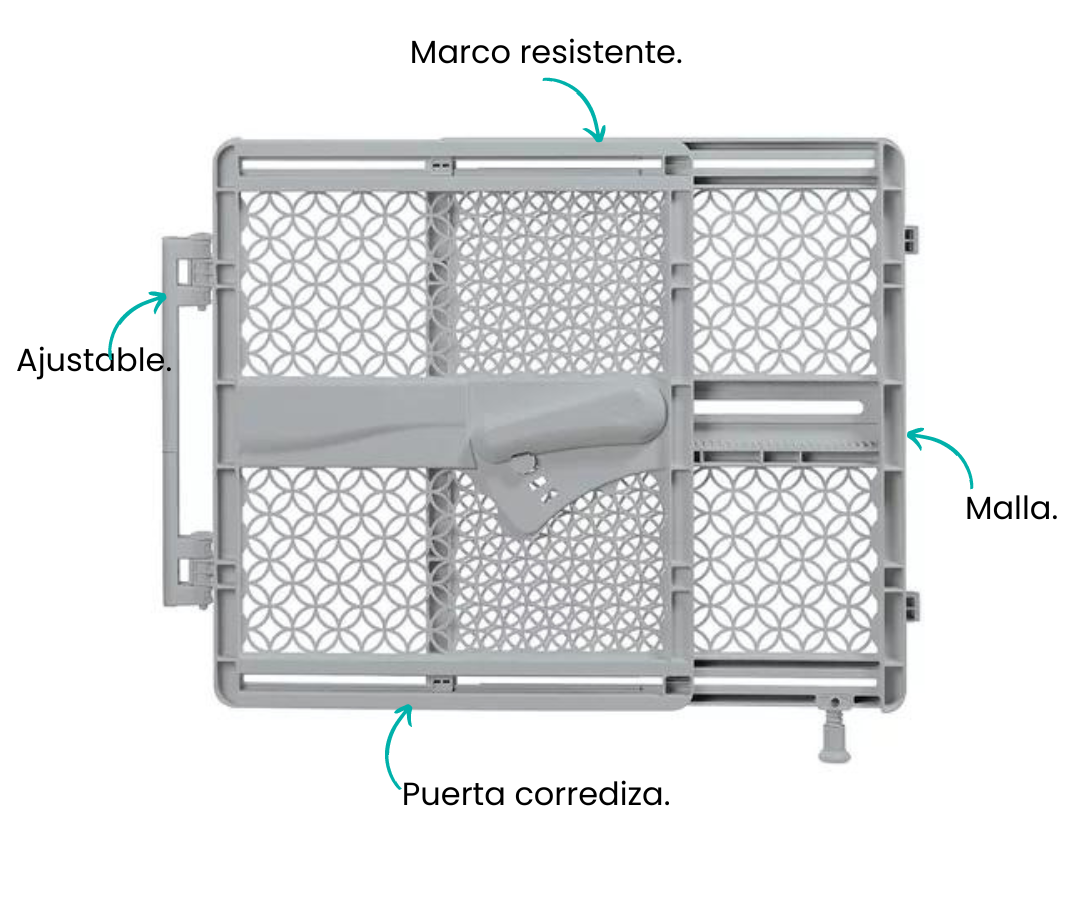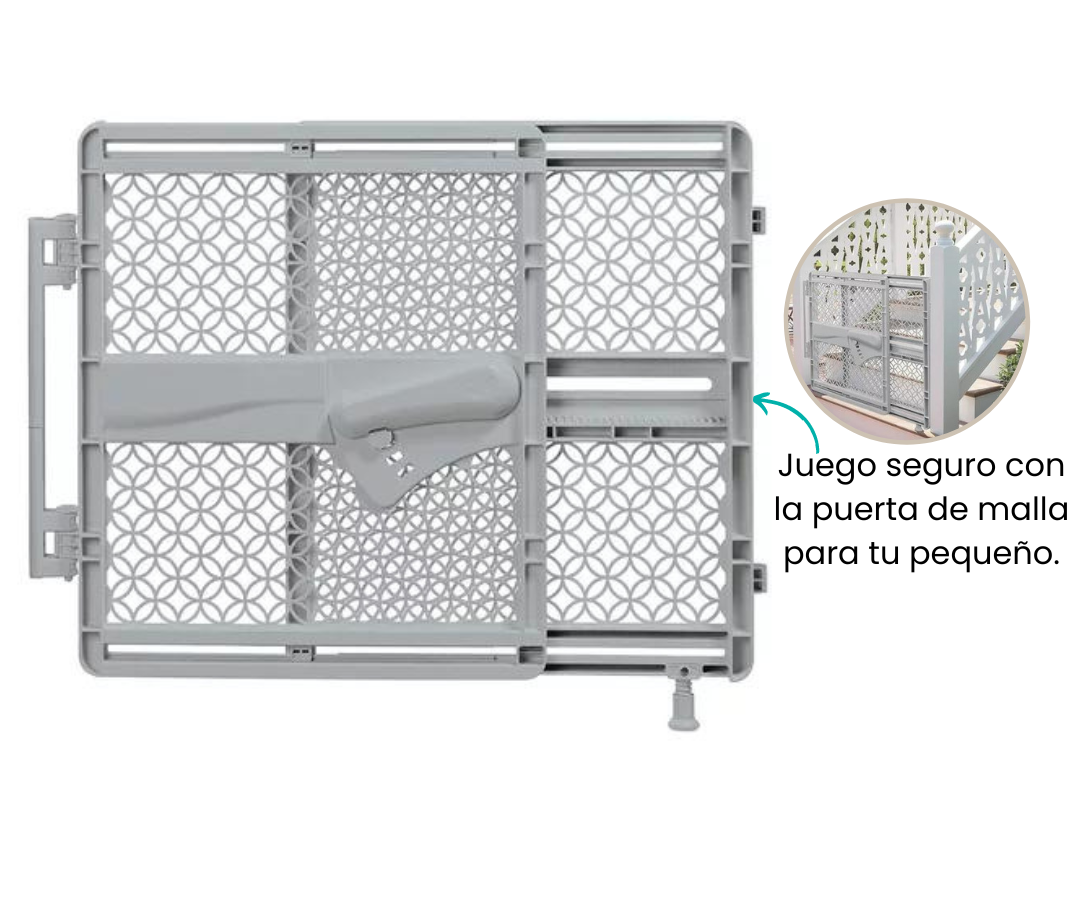 Esta reja con una puerta coreisa es el complemento perfecto para proporcionar seguridad y comodidad a tu pequeño, es ideal para mantener a tu bebé seguro mientras juega o descansa. Esta fabricado con materiales de alta calidad y la presión se monta de forma instantánea y segura sin hardware. El marco resistente rodea los paneles de malla de diamante rígidos. Ideal para separación de espacios, no ideal para perros de raza grande.