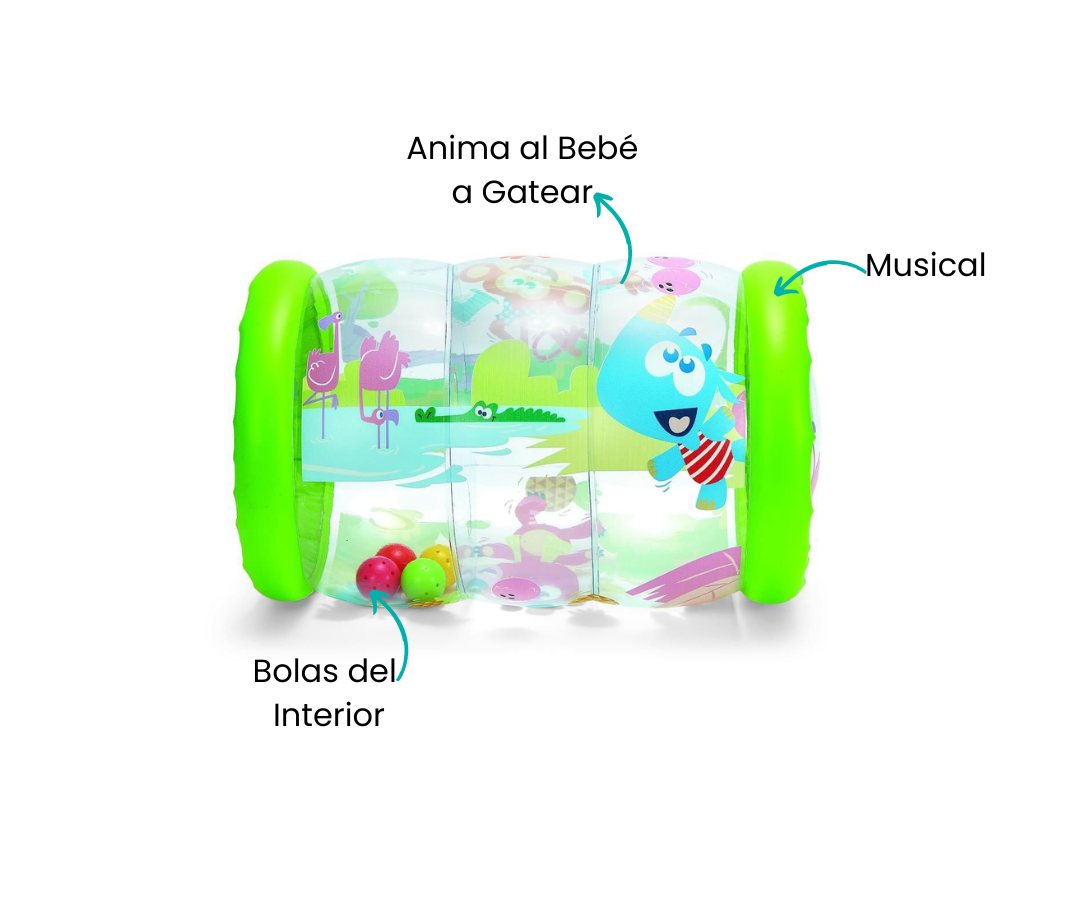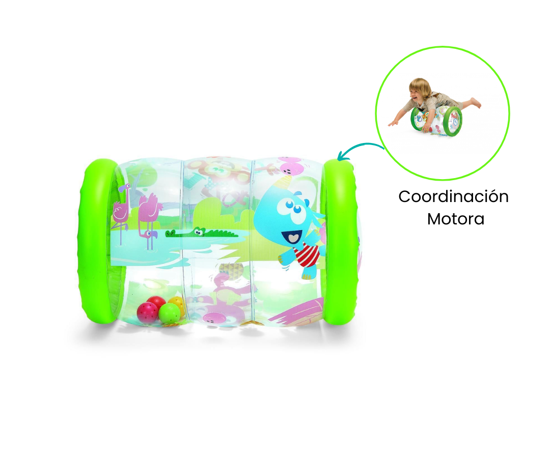El Musical Roller de Chicco es un juguete inflable en forma de rodillo grande que promueve el gateo del bebé mientras desarrolla su coordinación manual. Con divertidas melodías y sonidos, estimula sus sentidos y lo motiva a moverse. Su diseño colorido y atractivo captura la atención del bebé, fomentando el juego activo y el desarrollo motor.