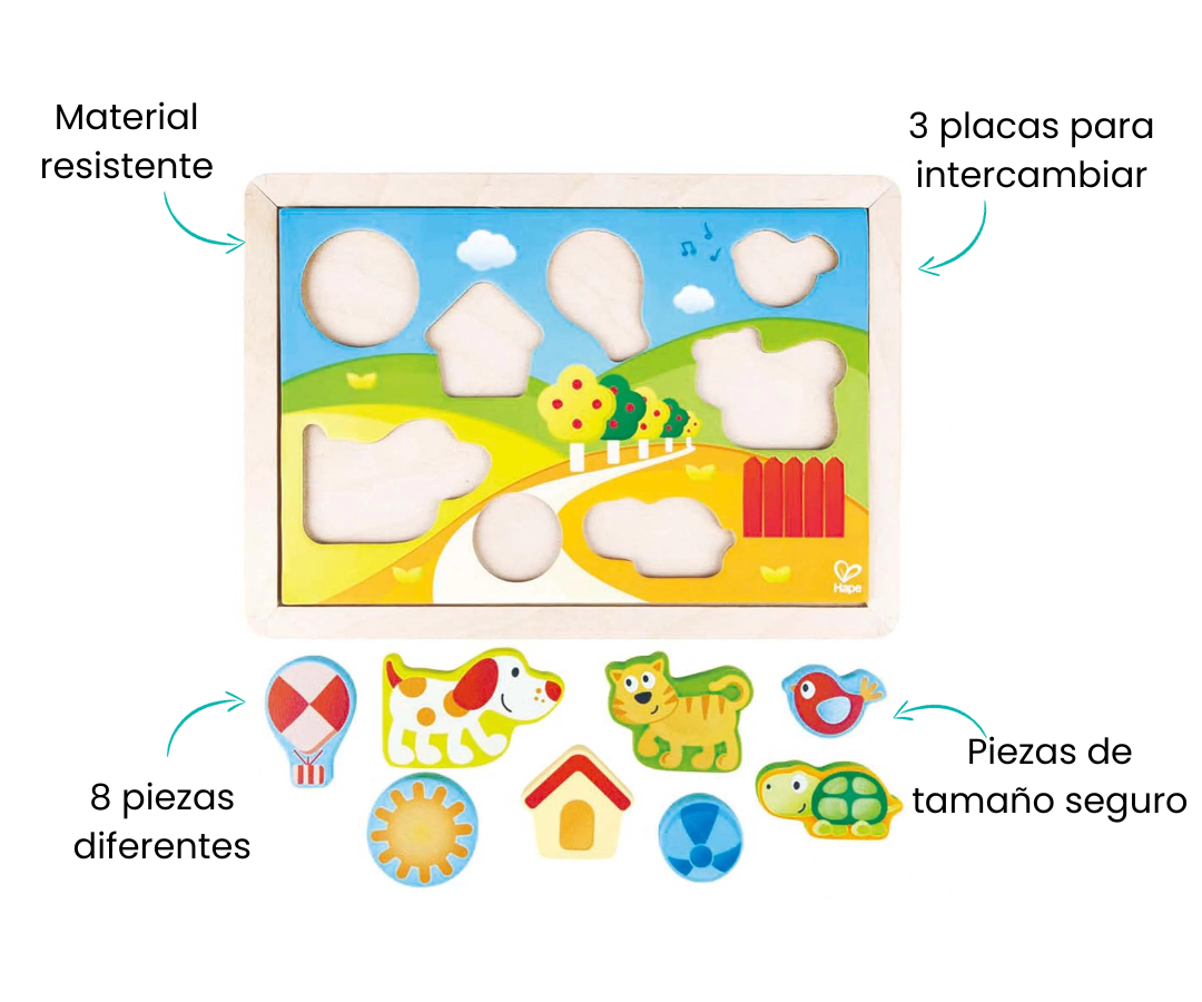 Este rompecabezas 3 en 1 presenta tres placas base diferentes con piezas diferentes para cada escena. Un nuevo desafío nuevamente