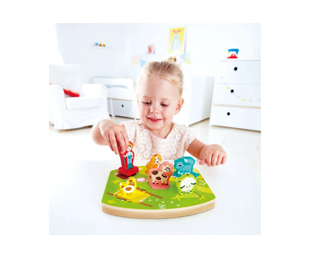 Resuelve el rompecabezas de sonidos de granja haciendo coincidir las piezas de los animales de granja por color, forma y sonido, ¡y crea tu propia historia de granja mientras juegas!